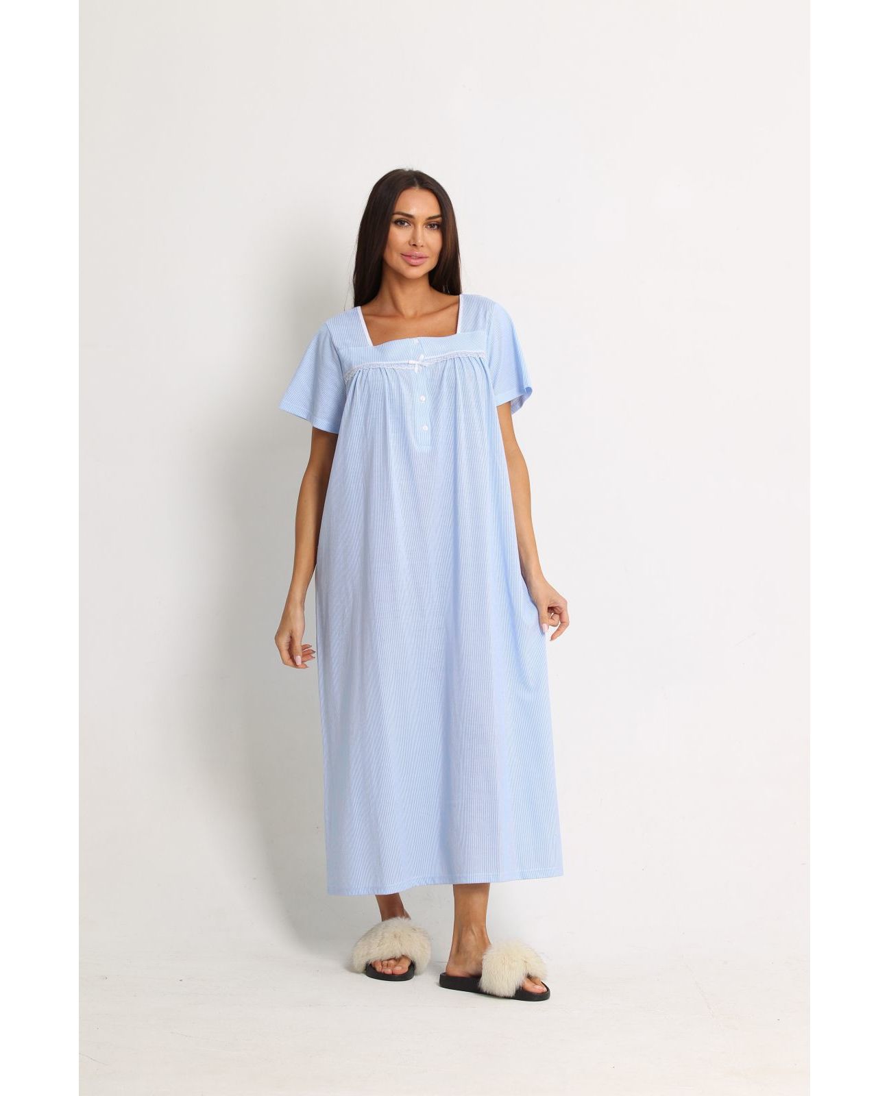 Нічна сорочка довга з коротким рукавом Soft moments (блакитна в смужку)