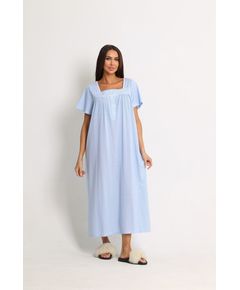 Нічна сорочка довга з коротким рукавом Soft moments (блакитна) Ніжна довга нічна сорочка у блакитному кольорі стане ідеальним вибором для комфортного сну. Модель з коротким рукавом оздоблена витонченим мереживом та ніжним квітковим принтом, що додає образу жіночності та легкості....