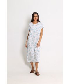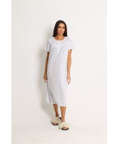 Нічна сорочка довга з коротким рукавом Soft moments (біла з блакитним) Елегантна довга нічна сорочка у білому кольорі з блакитним принтом створена для ніжного та комфортного сну. Модель із коротким рукавом оздоблена витонченим мереживом та квітковим візерунком, що надає образу легкості...