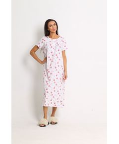 Нічна сорочка довга з коротким рукавом Soft moments (біла) Витончена довга нічна сорочка у білому кольорі створена для комфортного та приємного сну. Модель із короткими рукавами оздоблена ніжним мереживом та квітковим принтом, що додає образу романтичності та жіночності. Натуральна...