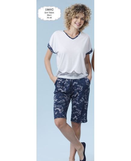 Опис Жіночий домашній костюм білий з синім Aqua 17509