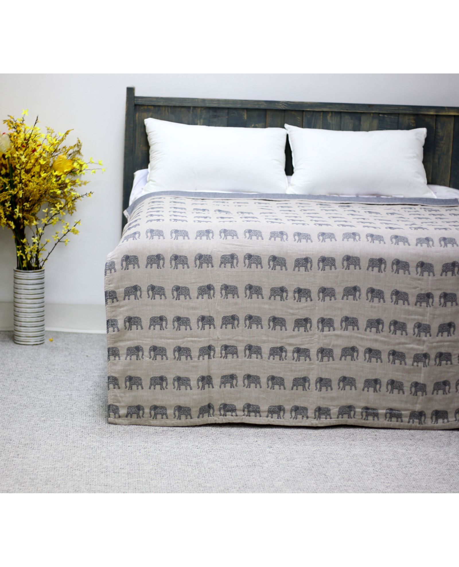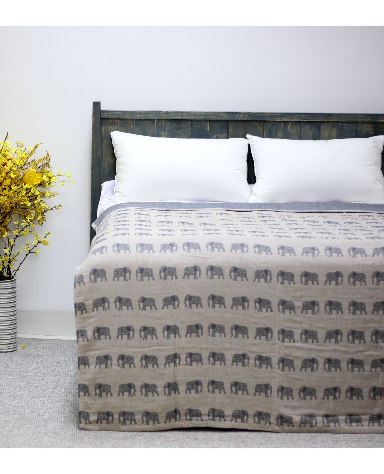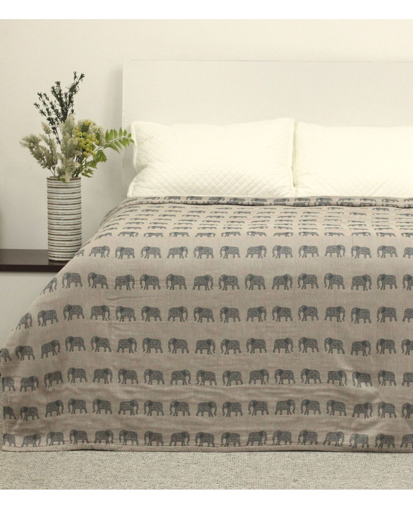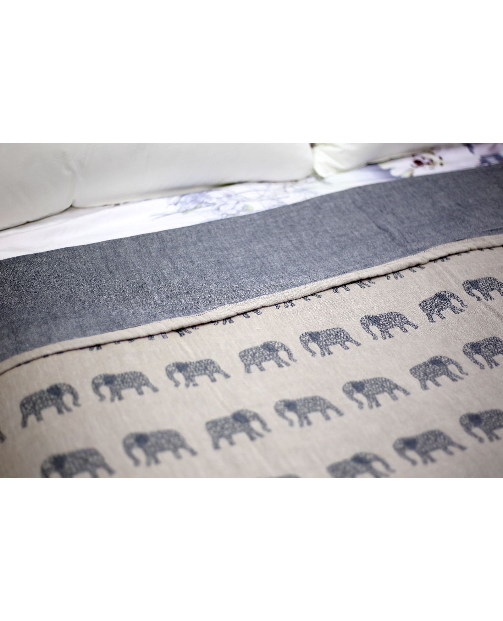 Практичне та водночас чарівне покривало стане улюбленим елементом інтер'єру дитячої кімнати. Стриманий сірий колір гармонійно поєднується з милим принтом слоників, створюючи затишну атмосферу. Виготовлене зі 100% бавовни — натуральної, дихаючої та безпечної тканини для дітей.