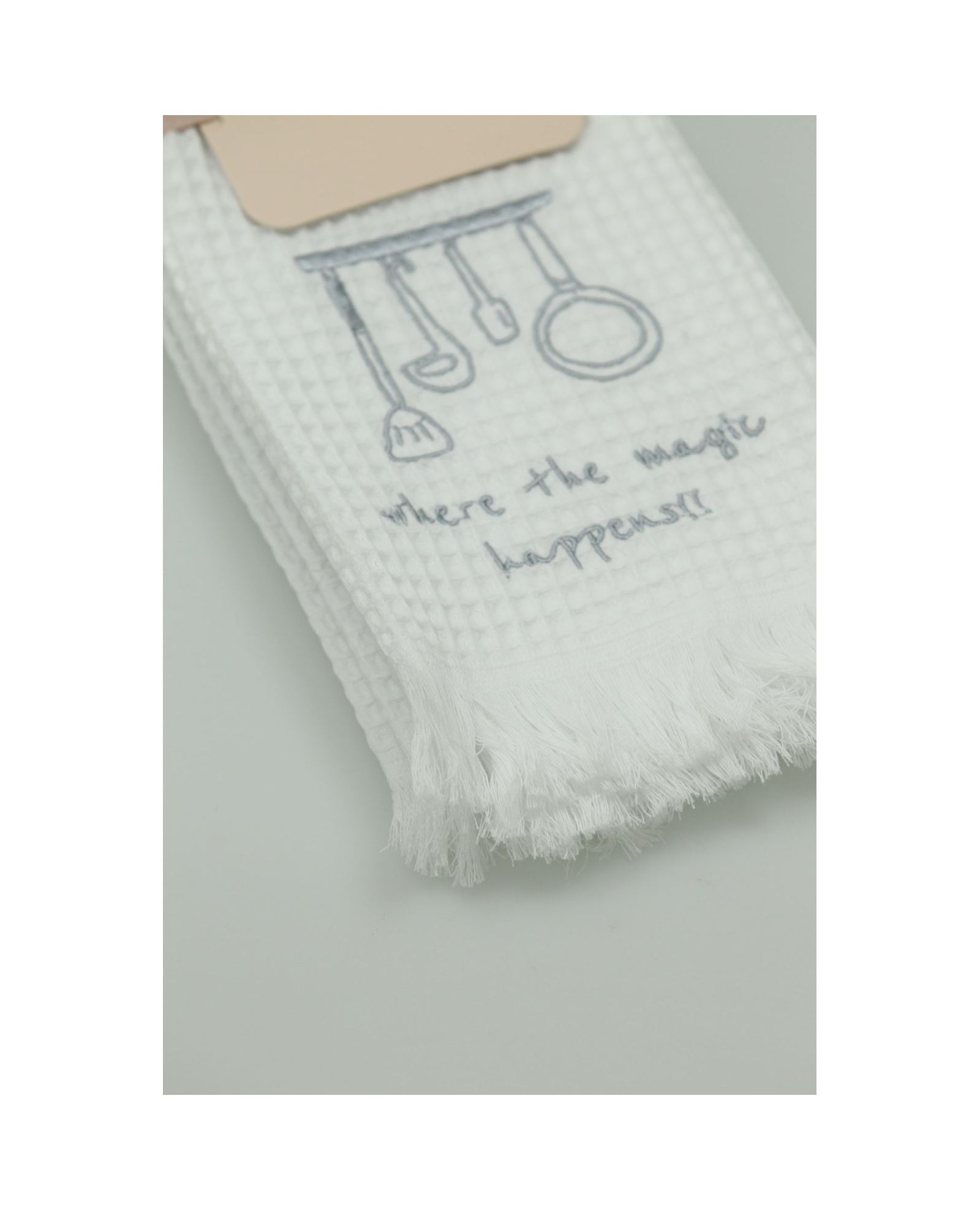 Набір кухонних вафельних рушників (2 шт, 40×60 см) з бахромою та вишивкою – натуральність і витонченість