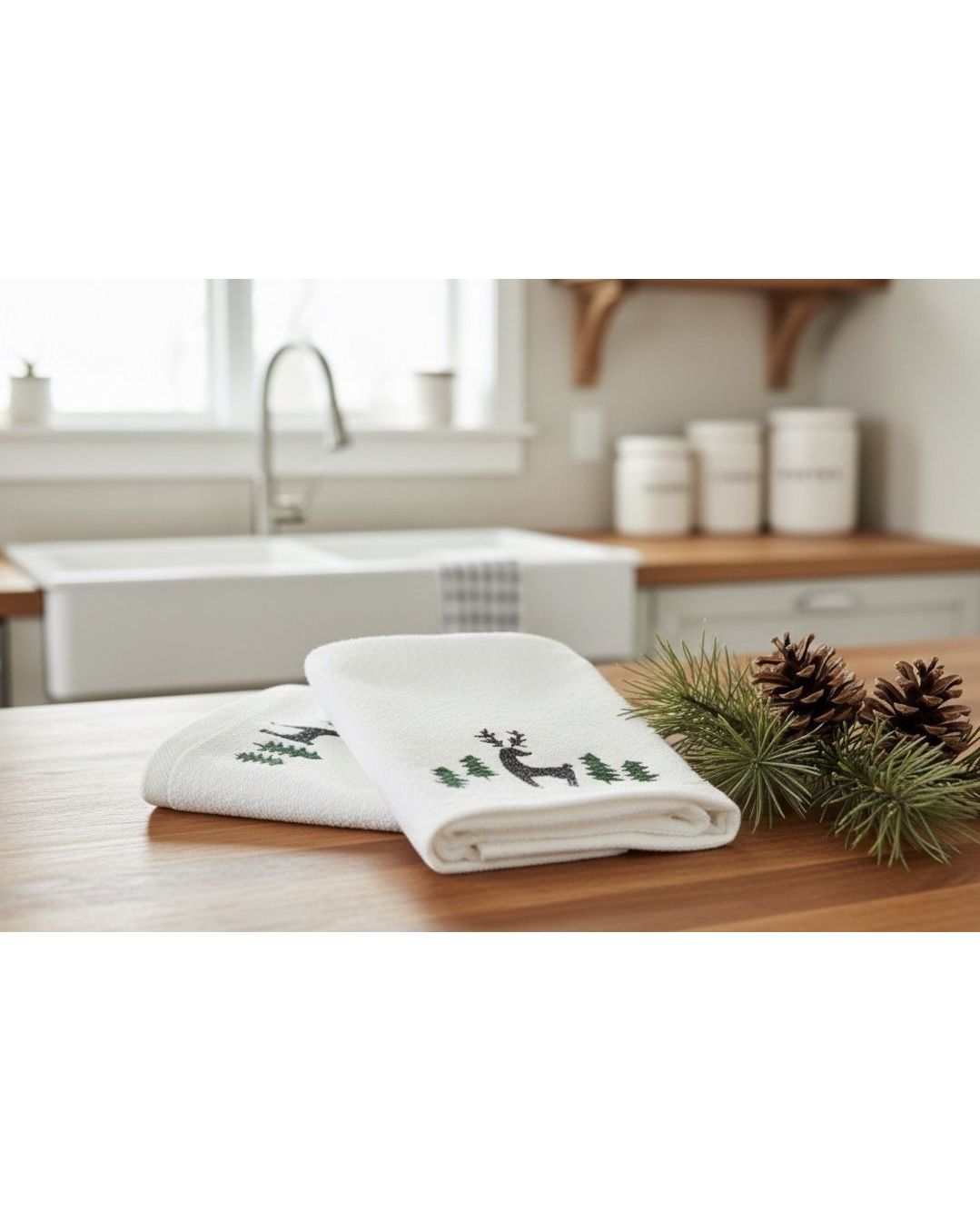 У комплект входить 2 рушники, що чудово доповнять інтер’єр вашої кухні в період новорічних свят. Вони не лише функціональні, а й стануть чудовим подарунком для рідних та друзів.