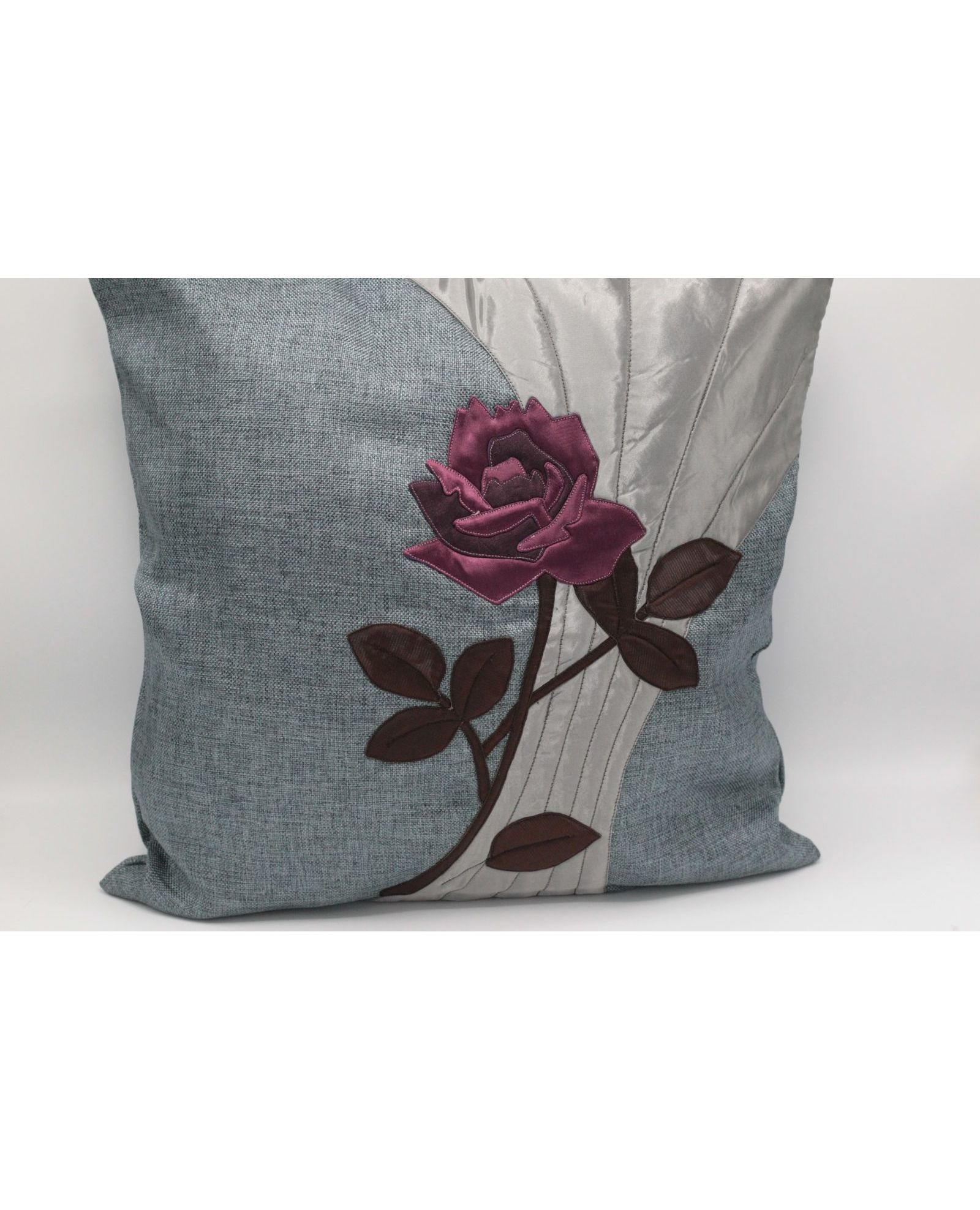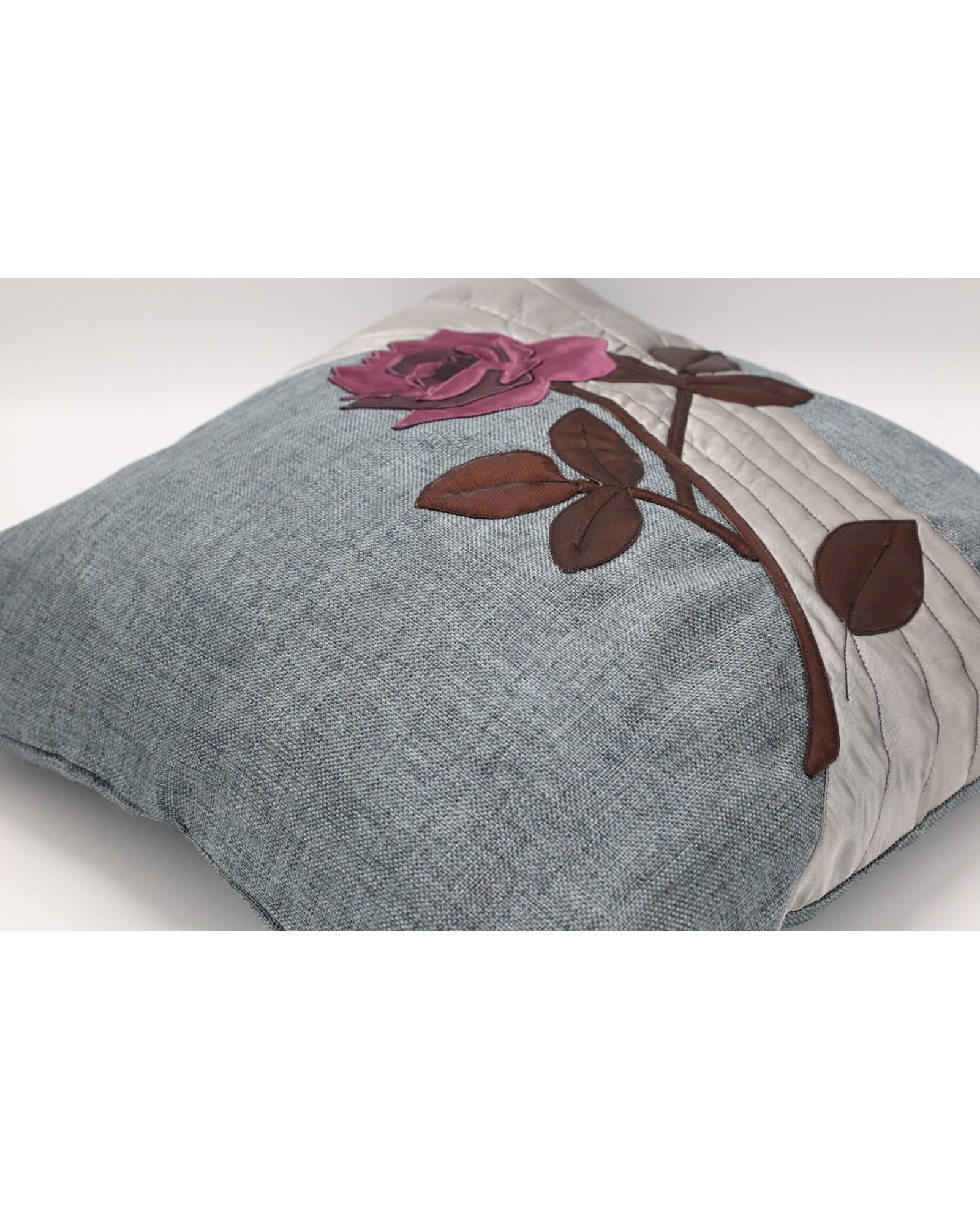 Декоративная наволочка 45х45 см серого цвета с аппликацией в виде розы