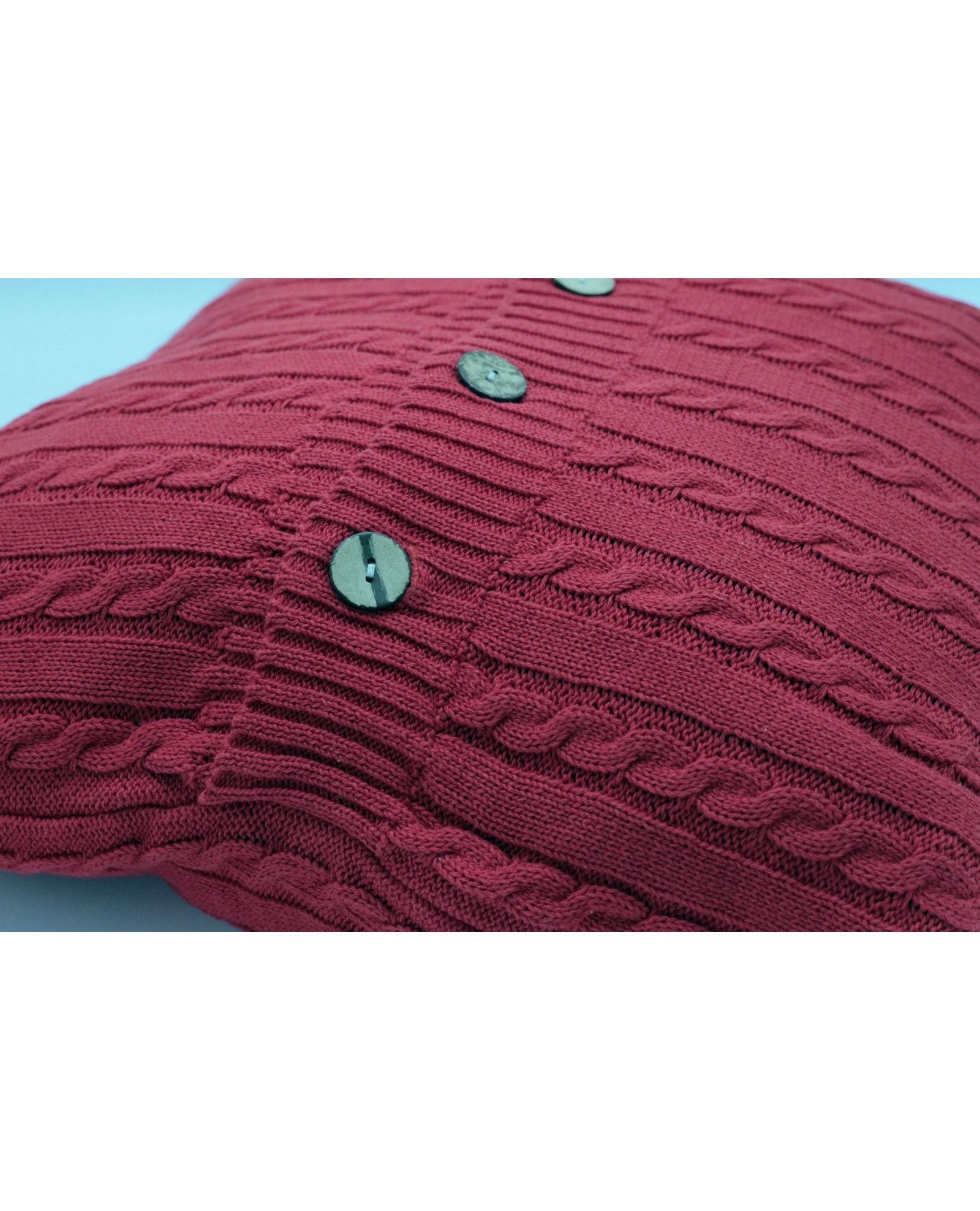 Декоративная наволочка 40х40 см вязаная бордового цвета с пуговицами