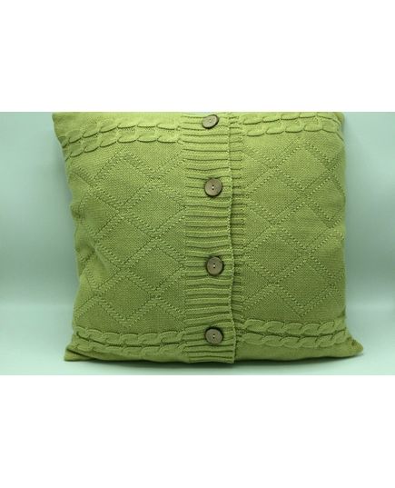 Декоративная наволочка 40х40 см вязаная зелёного цвета с пуговицами