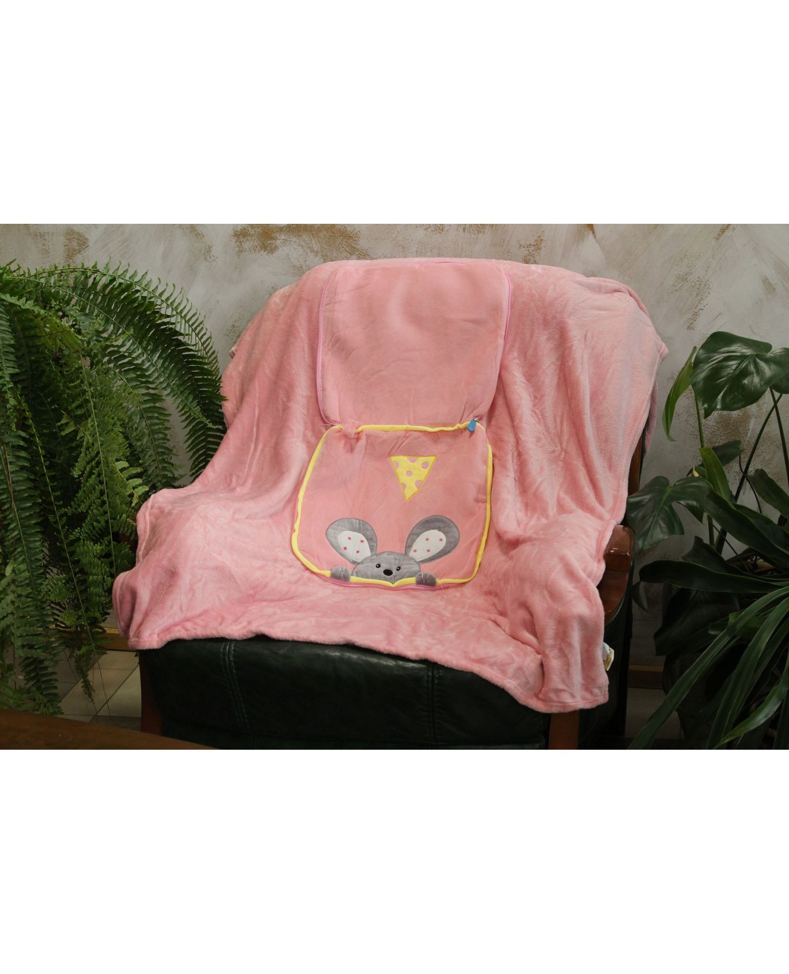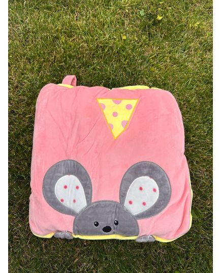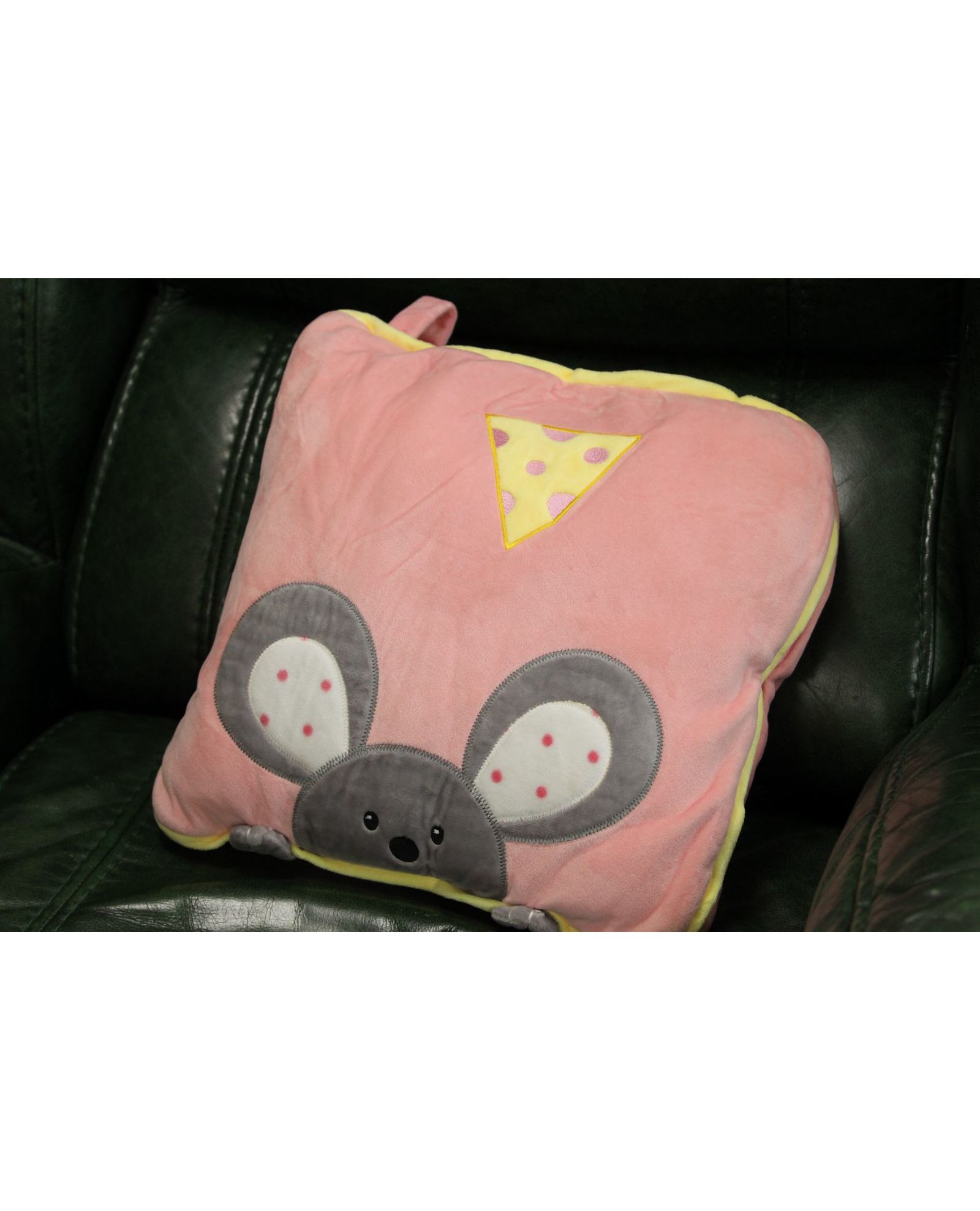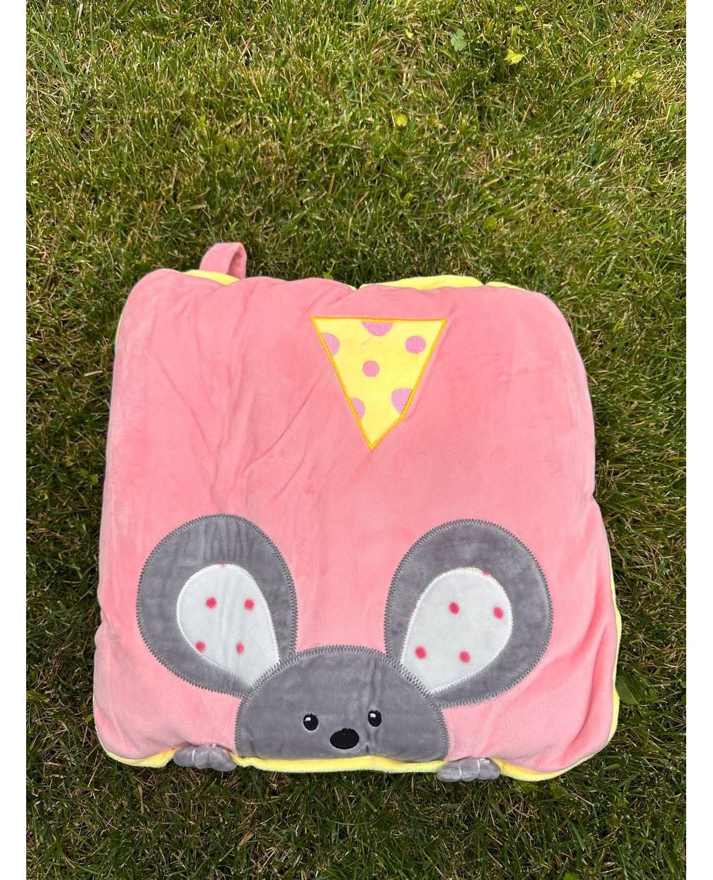 Очаровательная подушка-трансформер – идеальный выбор для комфорта и уюта. В сложенном виде – это мягкая декоративная подушка размером 30×30 см с изображением милой мышки. Развернув её, вы получите полноценное покрывало 110×160 см, которое удобно брать с собой в поездки или использовать дома.