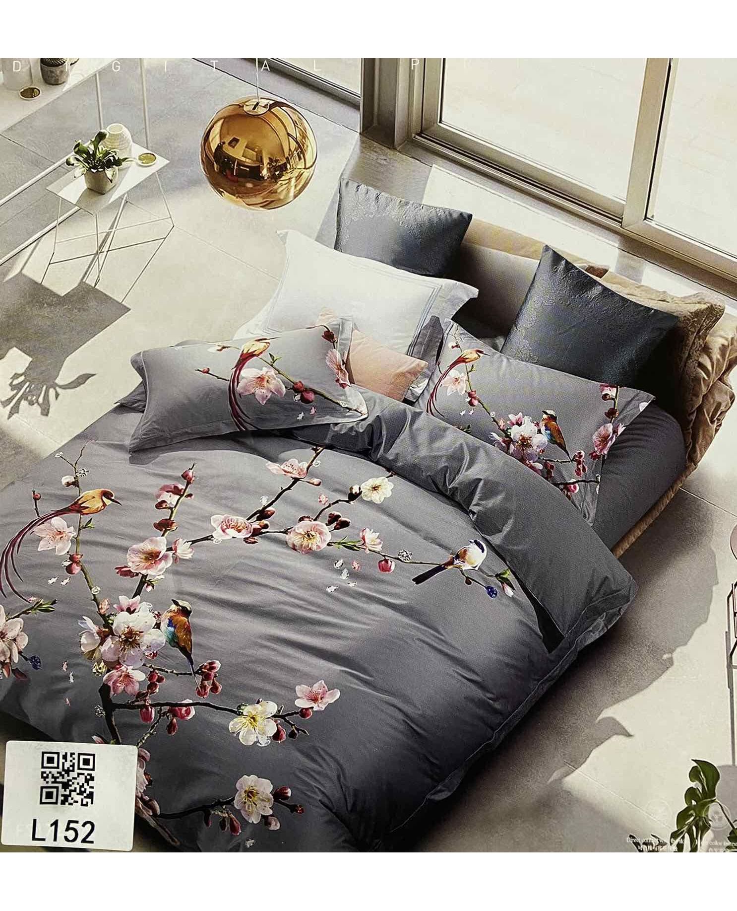 Комплект постельного белья серый с цветочным принтом 200х230 см