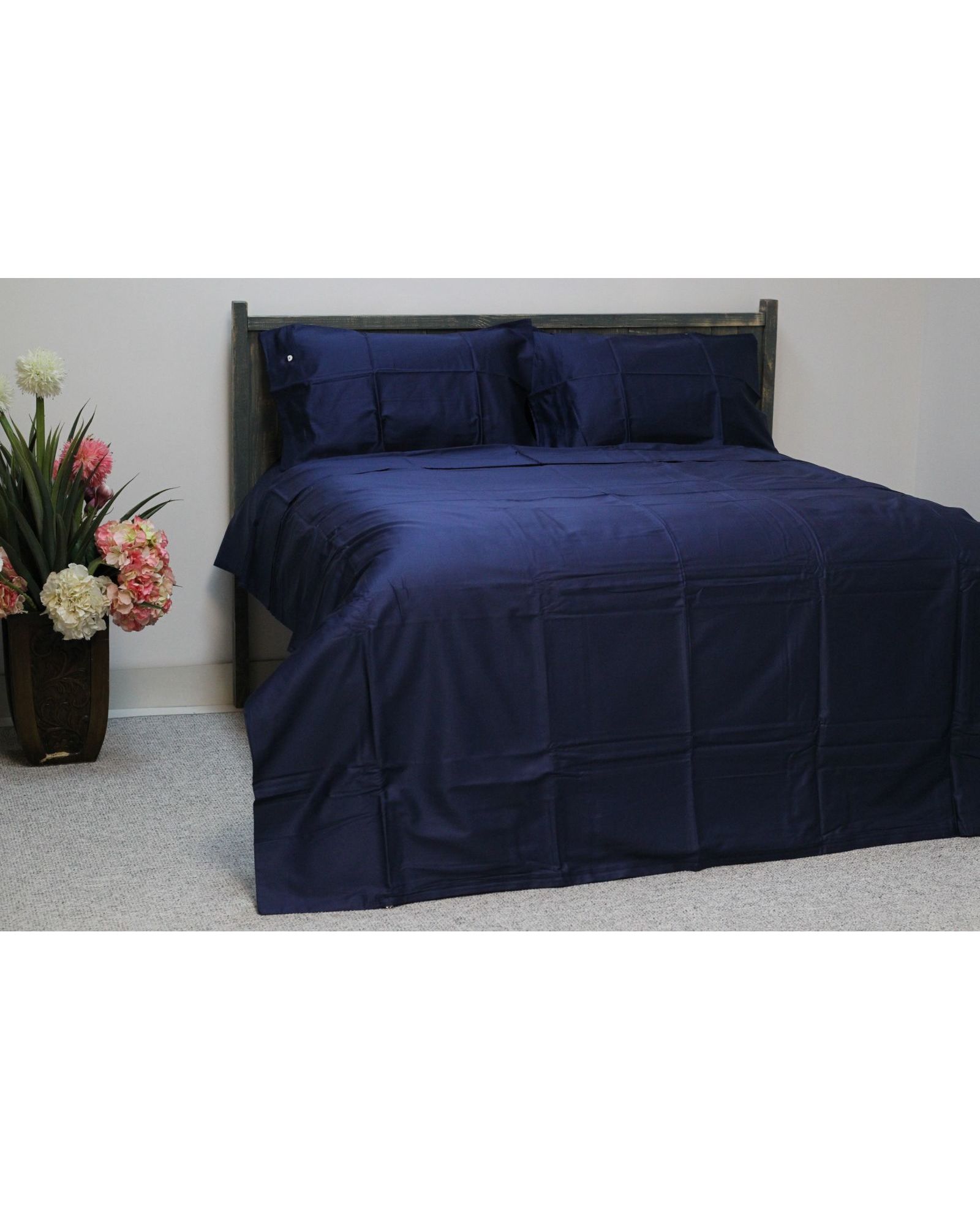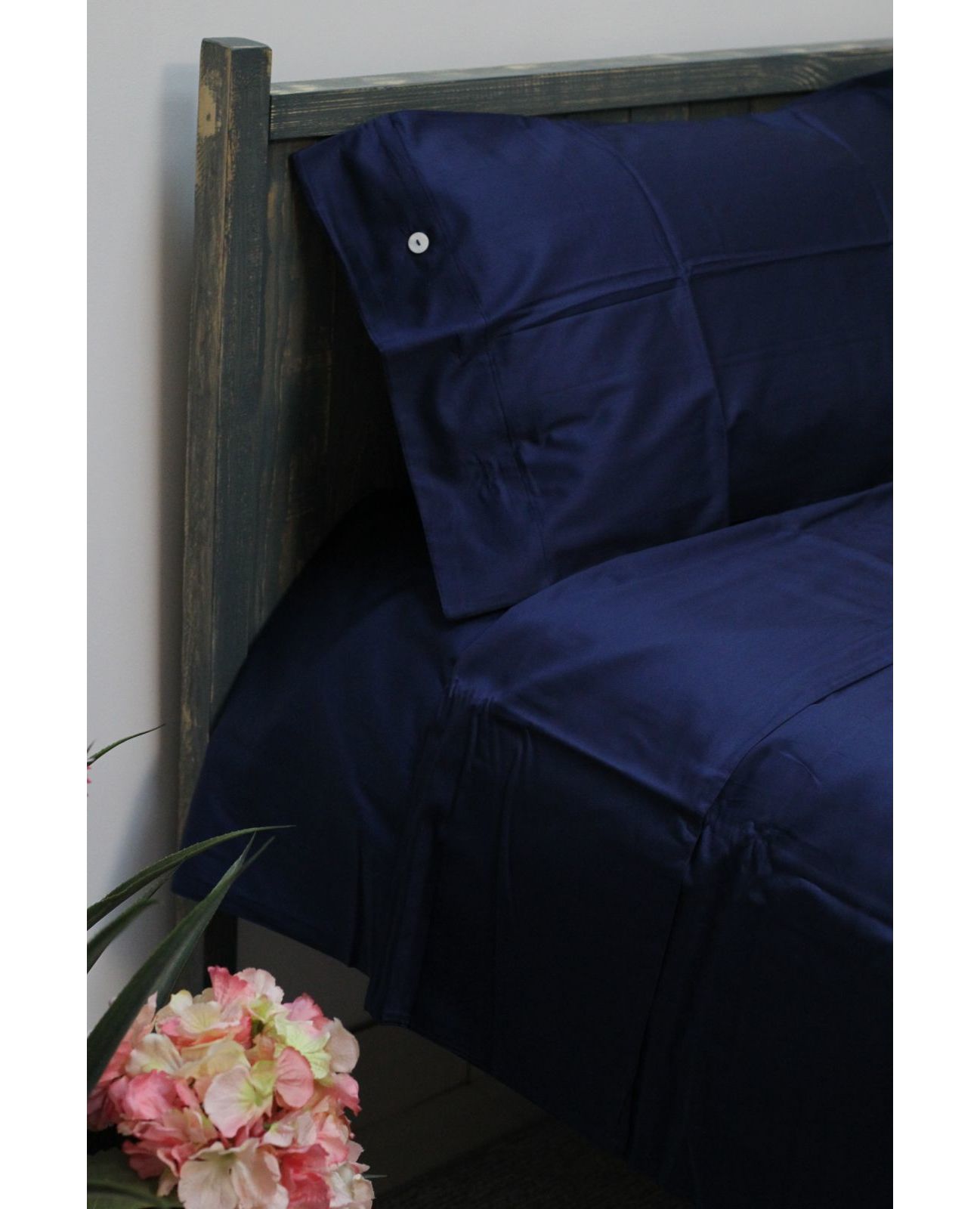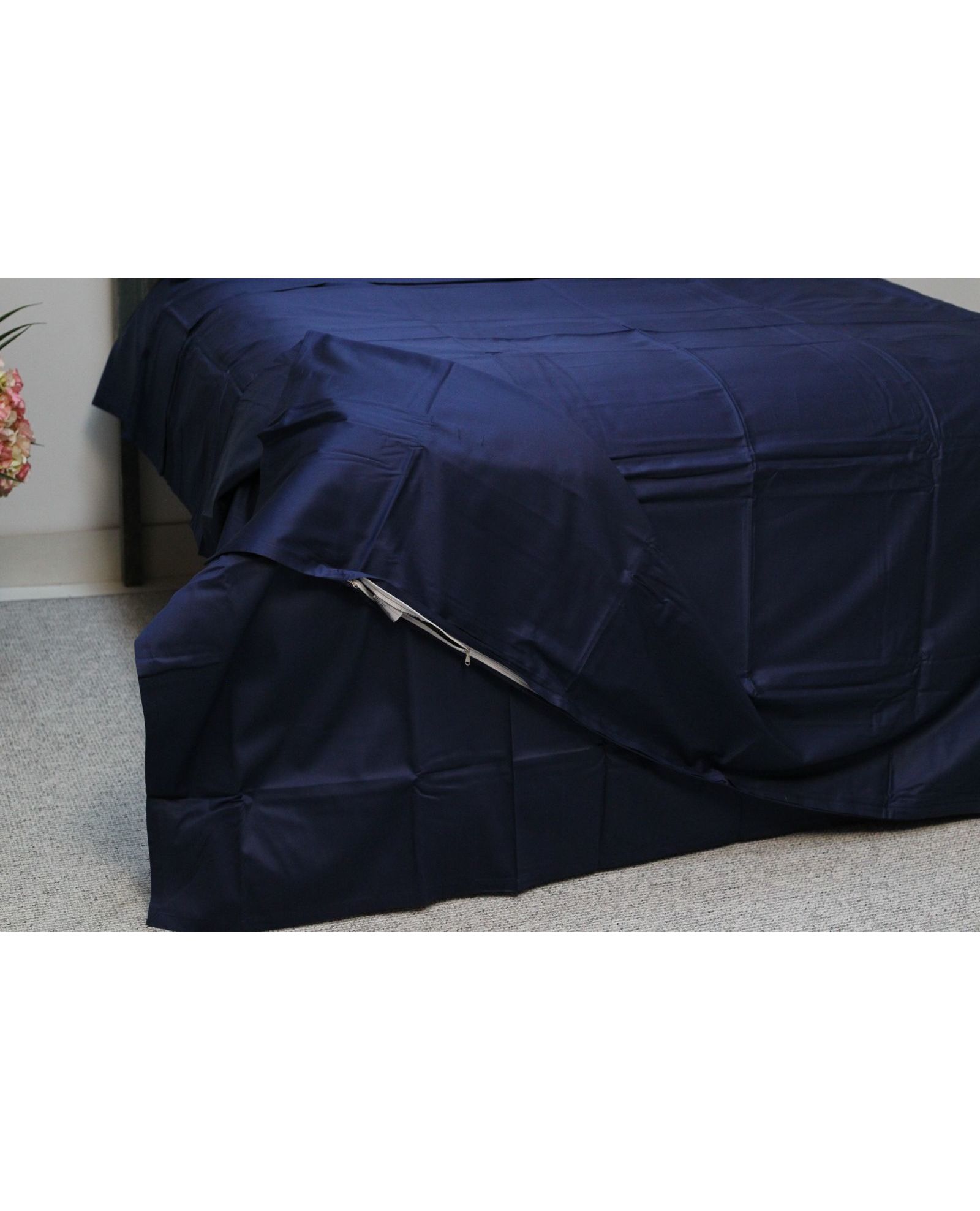 Цвет индиго придаёт спальне благородство, глубину и спокойствие. Ткань из сатина Delux 100% обладает натуральным составом, шелковистой текстурой и долговечностью в использовании.