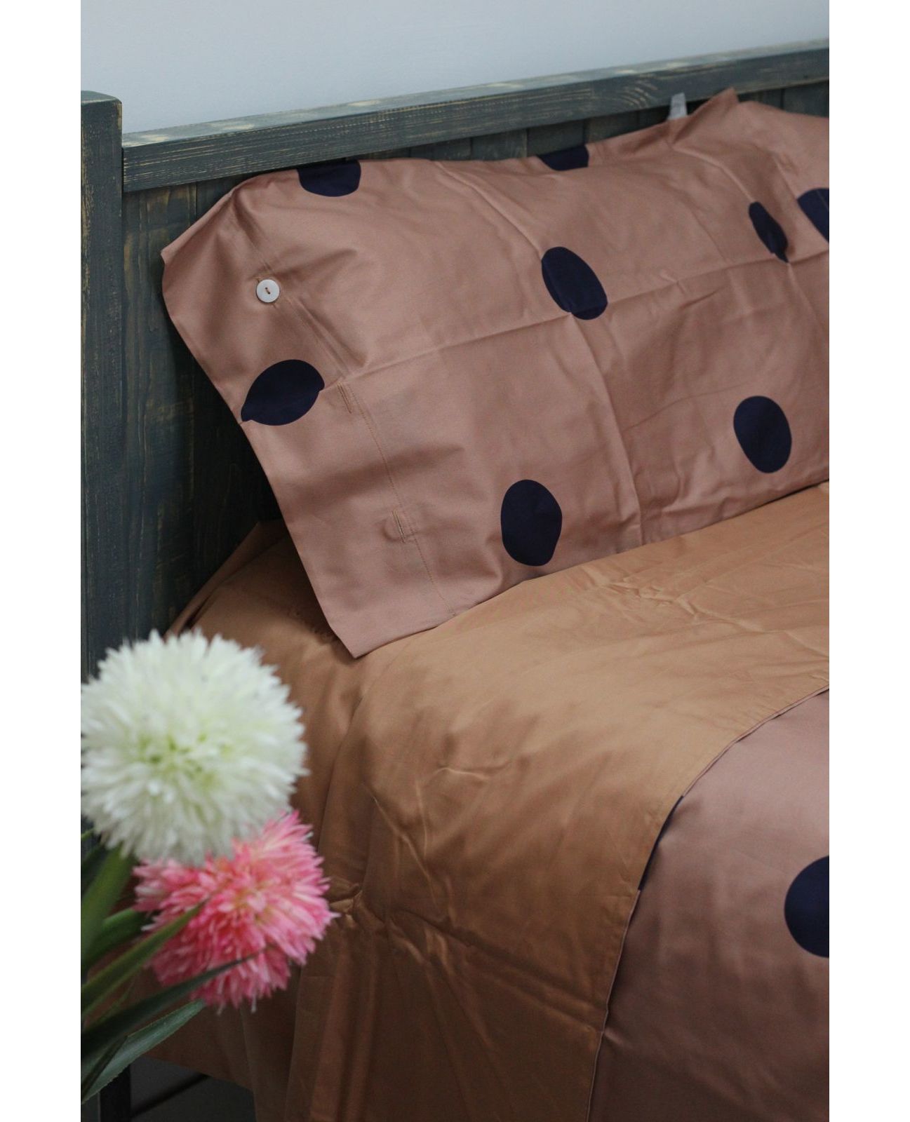 Комплект постельного белья терракотового цвета с тёмно-синим горохом 200х230 см
