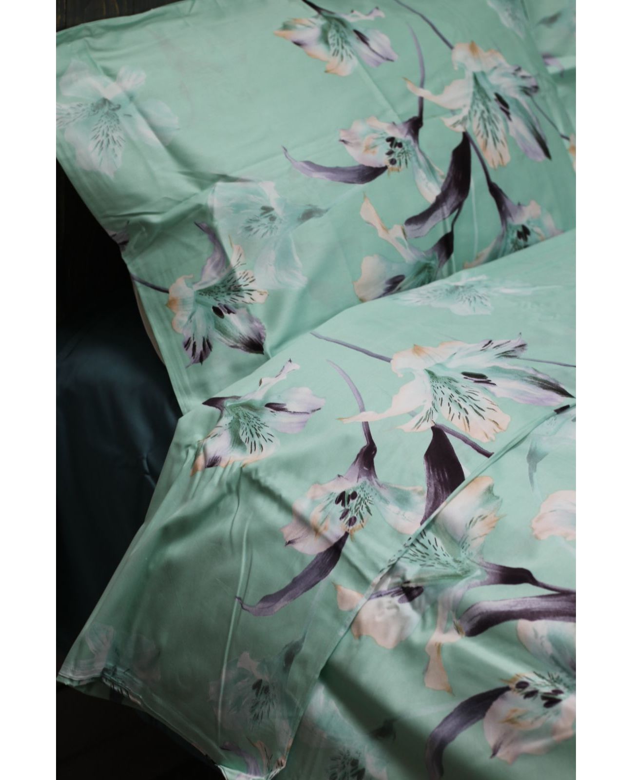 Комплект постельного белья мятного цвета с цветочным принтом 200х230 см