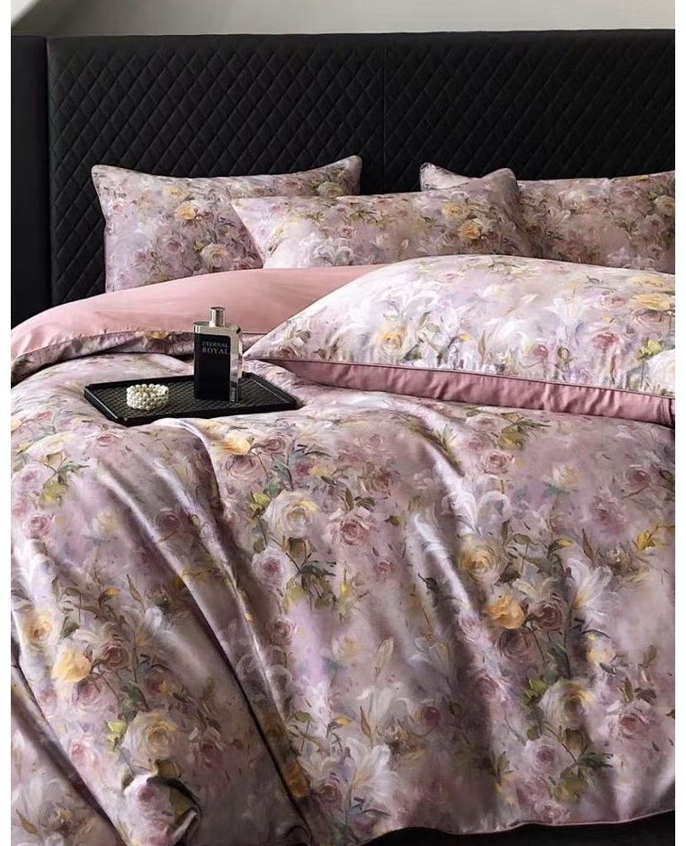 Комплект постельного белья персикового цвета с цветочным принтом 200х230 см