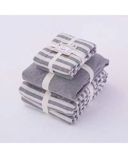 Современный комплект постельного белья из 100% хлопка — отличный выбор для тех, кто ценит стиль и удобство. Серый цвет в полоску придаёт спальне элегантность, а простыня на резинке надёжно фиксируется на матрасе.