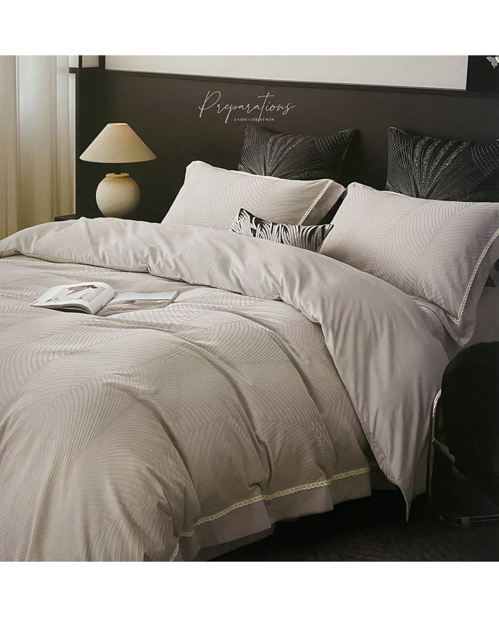 Бежевый оттенок с утончённым жакардовим узором придаёт спальне сдержанную элегантность и уют. Натуральный хлопок дарит телу мягкость, дышащие свойства и комфорт на протяжении всей ночи.