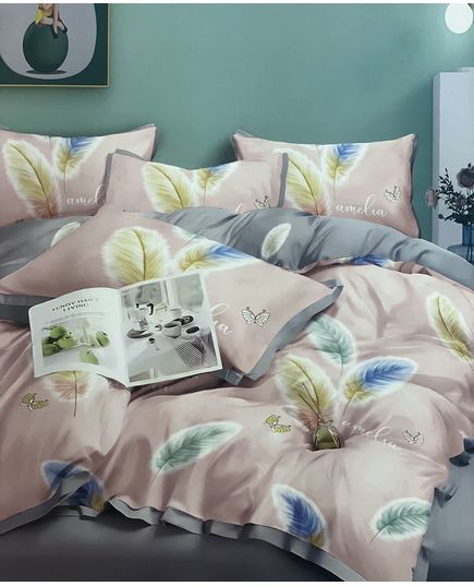 Романтичный принт с перьями и бабочками на фоне утончённой серо-розовой гаммы додаёт уюта и нежности вашей спальне. Сатиновая ткань мягко облегает тело и обеспечивает комфорт каждую ночь.