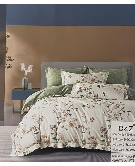 Цветочный рисунок на фоне глубокого зелёного оттенка придаёт спальне свежесть и уют. Мягкий сатин обволакивает тело, забезпечивая комфортный сон на протяжении всей ночи.