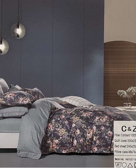 Комплект постельного белья с цветочным узором в сочетании полынного и серого оттенков создаёт атмосферу уюта и гармонии в спальне. Натуральный сатин приятен на ощупь, прочен и сохраняет яркость цвета даже после многочисленных стирок. Подходит для ежедневного использования.