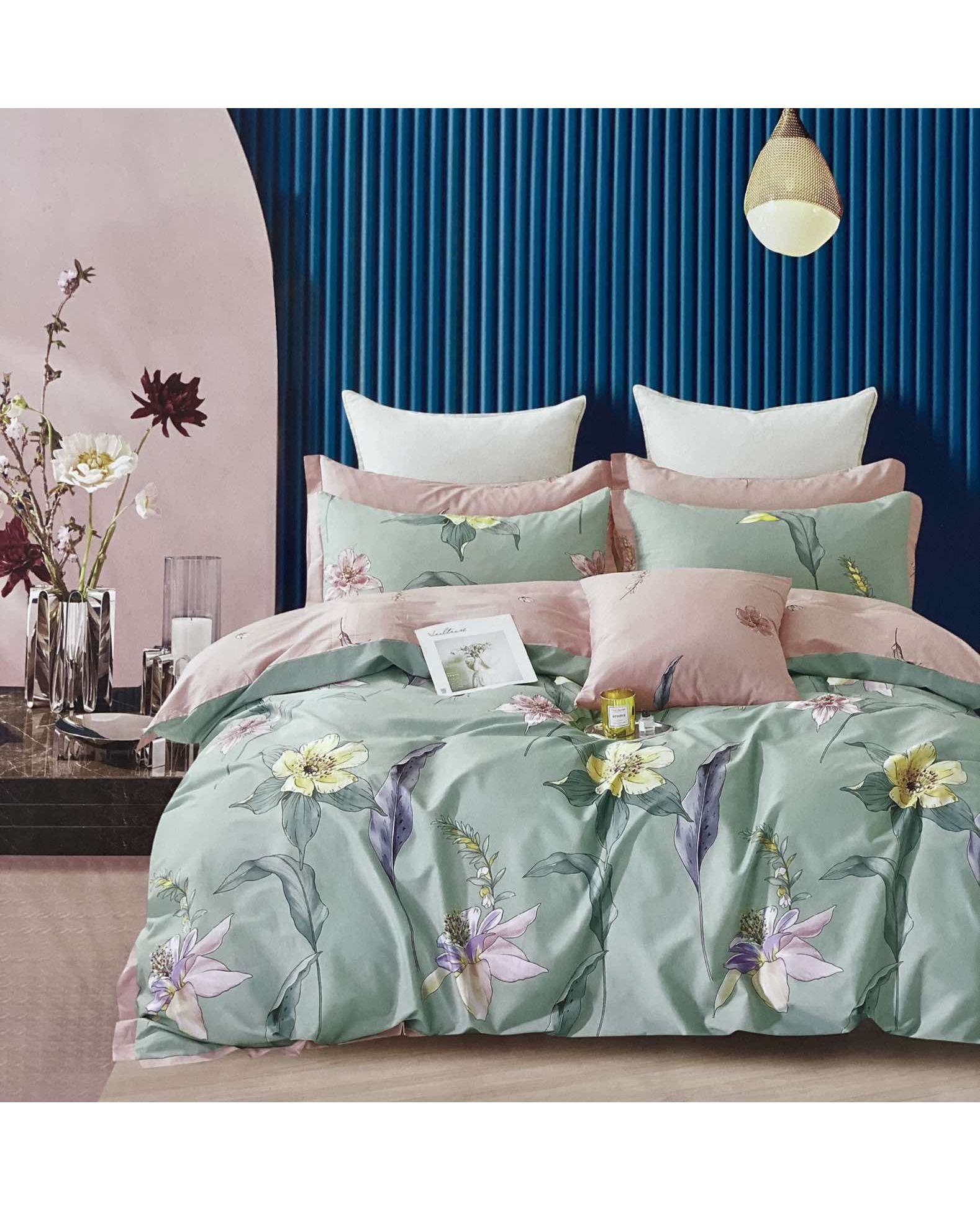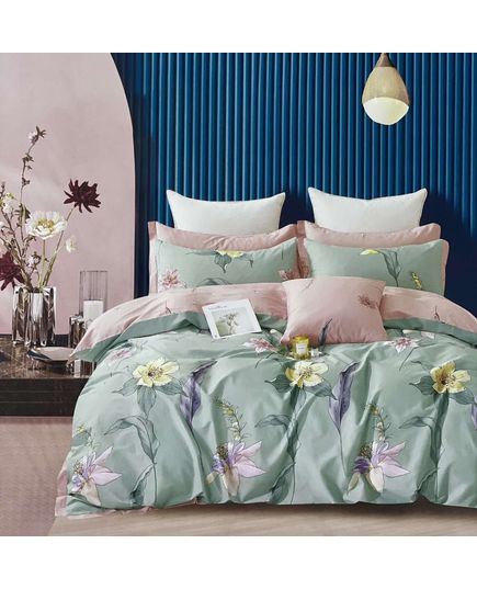 Мягкое сочетание пудрового и зелёного оттенков в тандеме с цветочным орнаментом наполняет спальню уютом и свежестью. Натуральный сатин приятен к телу и сохраняет аккуратный вид даже после многократных стирок.