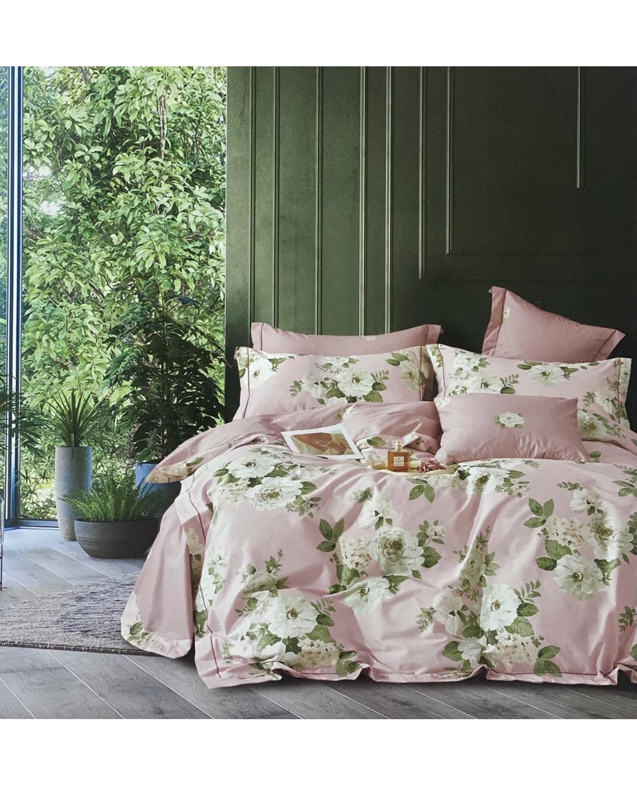 Нежный розовый комплект постельного белья с цветочным узором создаёт уют и умиротворение. Ткань из 100% сатина радует прикосновениями и выглядит элегантно.