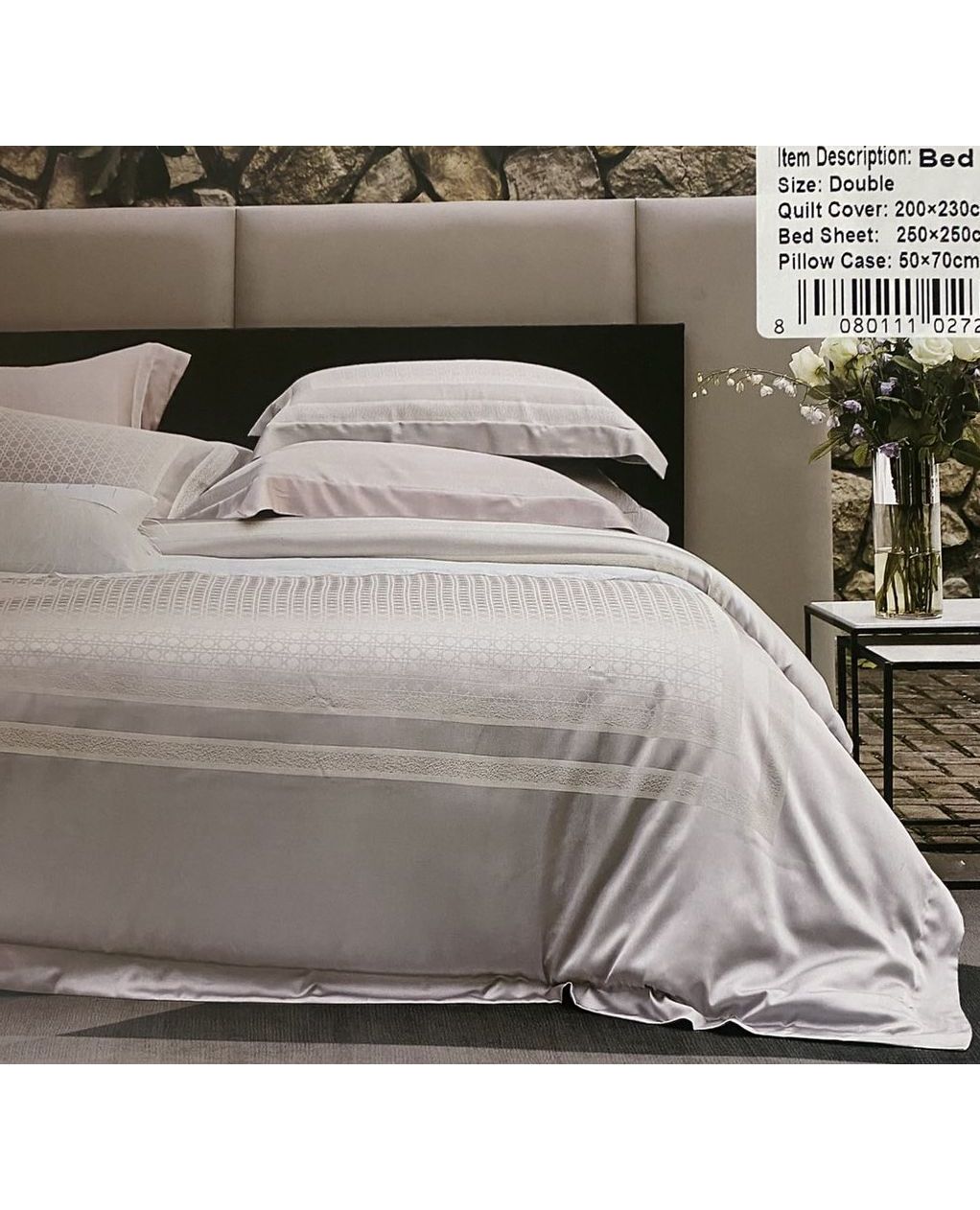 Постельное бельё серебристого цвета с стильным узором из сатина Delux