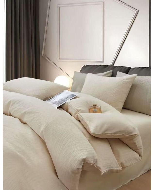 Комплект постельного белья из вареного хлопка, ванильного цвета, с изысканным жаккардовим узором