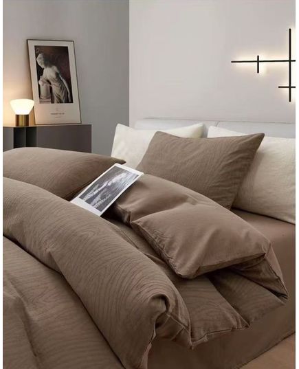 Комплект постельного белья из вареного хлопка, коричневого цвета, с изысканным жаккардовим узором