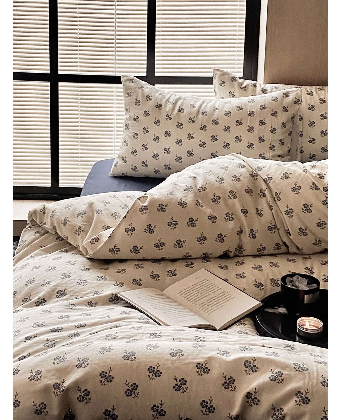 Комплект постельного белья из муслина бело-синего цвета с цветочным принтом