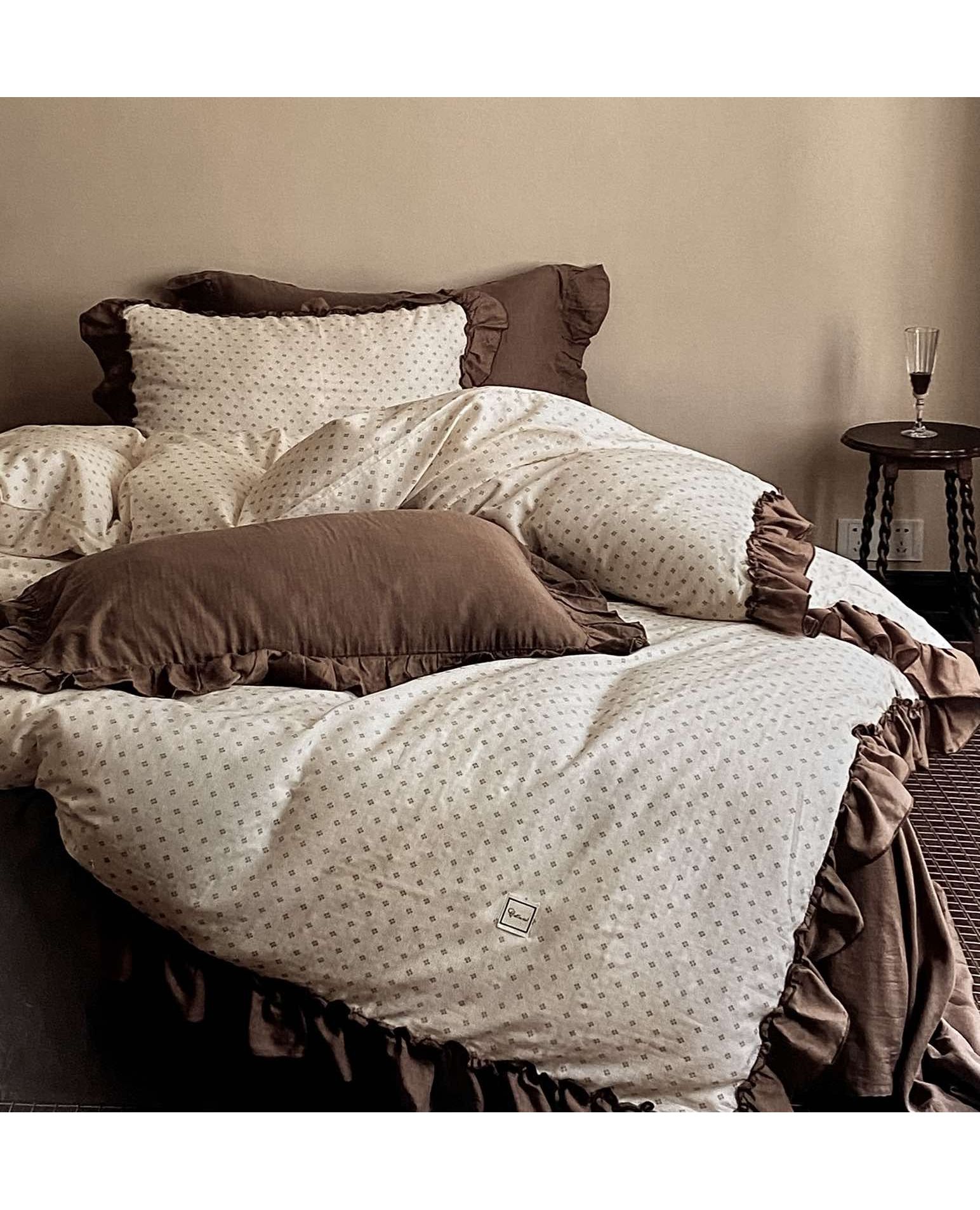 Комплект постельного белья из муслина молочно-коричневого цвета с узором и рюшами