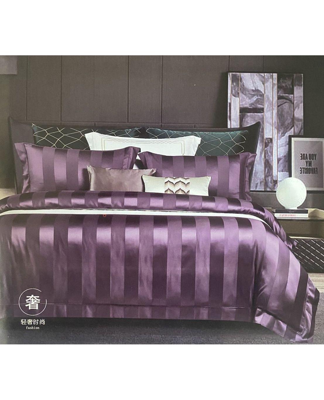 Комплект постельного белья из хлопка фиолетового цвета в широкую полоску