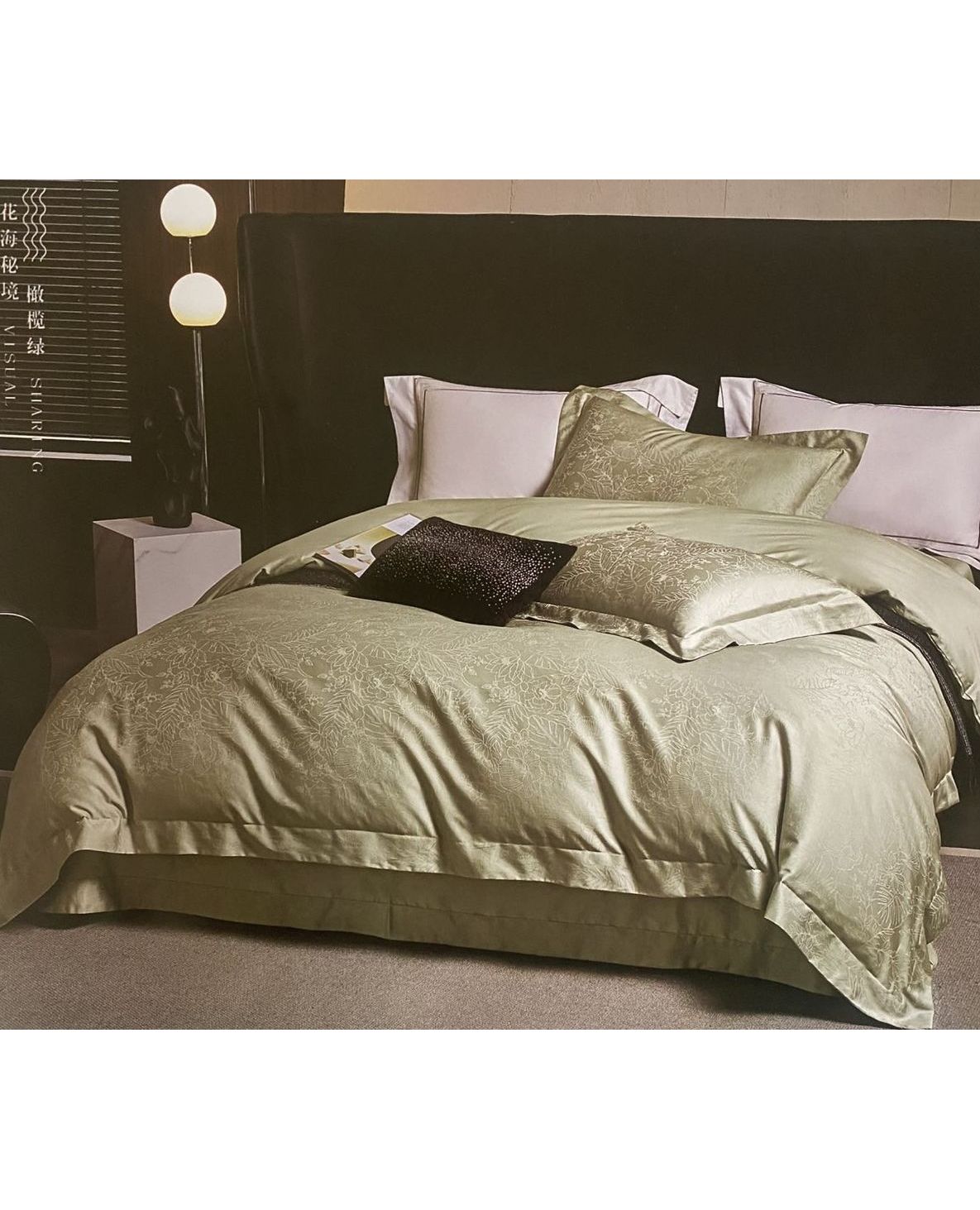 Комплект постельного белья из хлопка оливкового цвета с цветочным узором