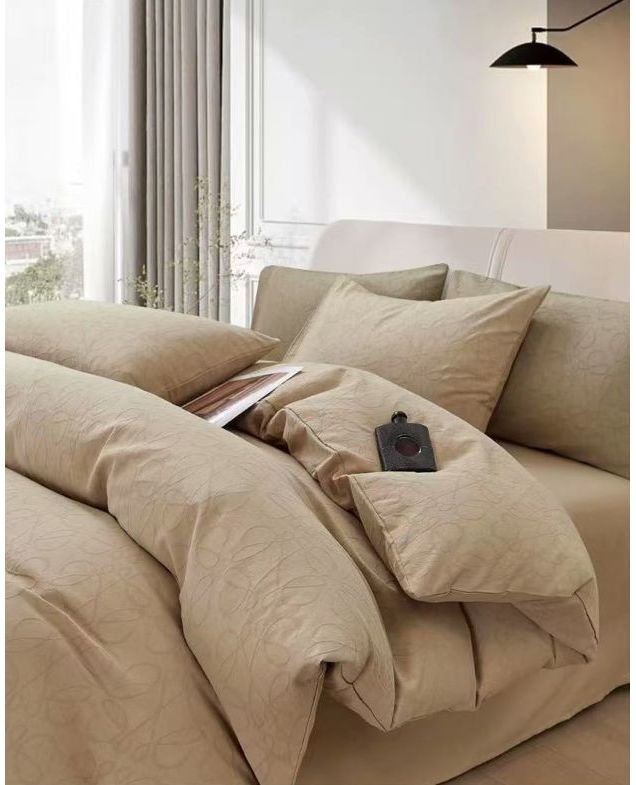 Оттенок песочного цвета, с утончённым жаккардовим узором придаёт спальне сдержанную элегантность и уют. Натуральный хлопок дарит телу мягкость, дышащие свойства и комфорт на протяжении всей ночи.