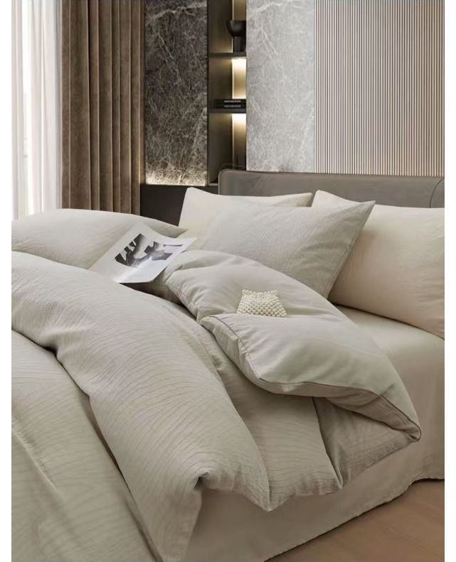 Серый оттенок с утончённым жаккардовим узором придаёт спальне сдержанную элегантность и уют. Натуральный хлопок дарит телу мягкость, дышащие свойства и комфорт на протяжении всей ночи.