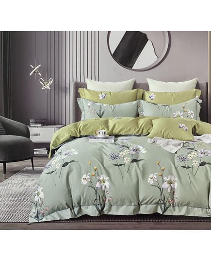 Комплект постельного белья из сатина зелёного цвета с цветочным узором