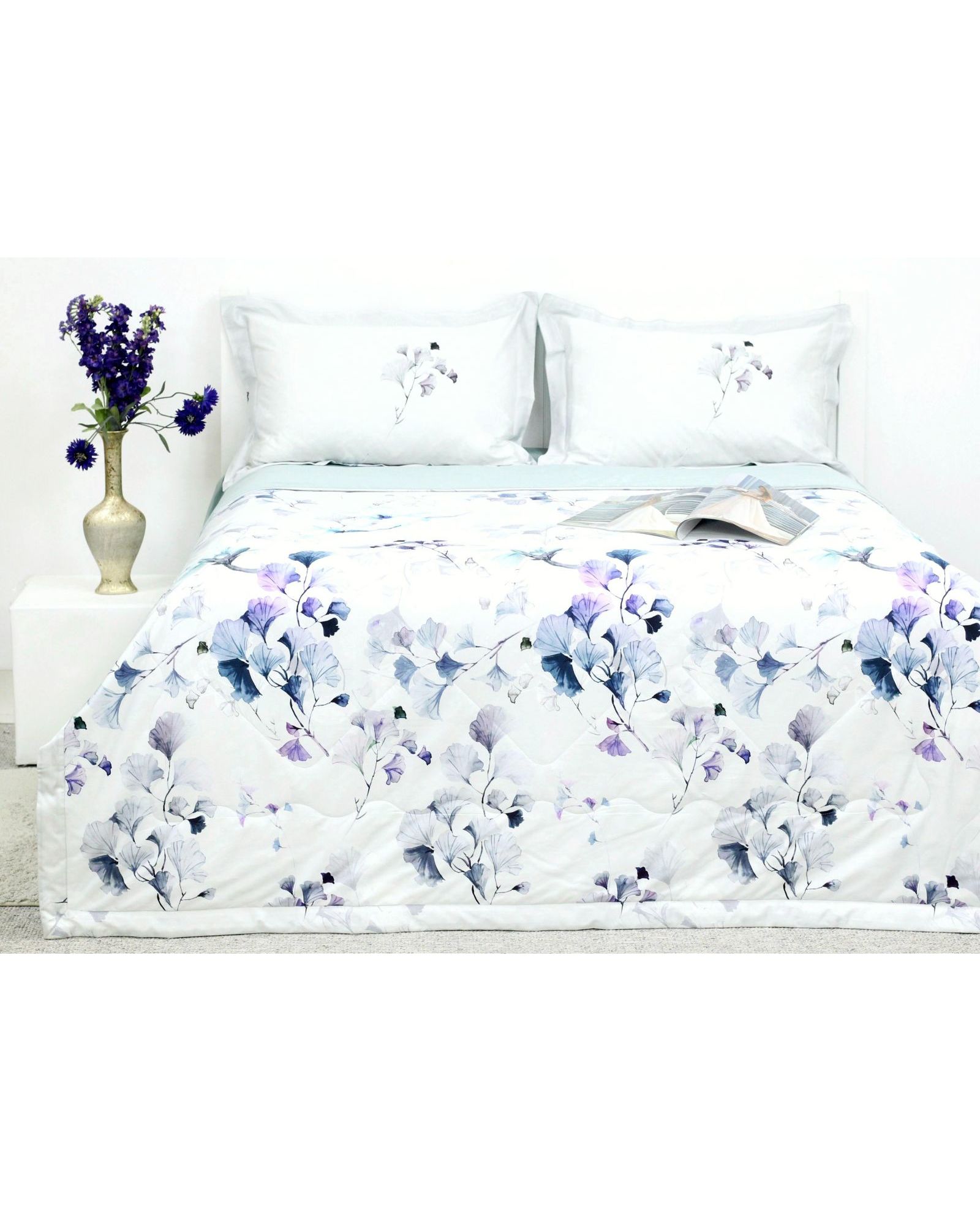 - Наволочки (2 шт, 50х70 см) серого цвета с цветочным принтом дополняют одеяло, добавляя элегантности и красоты.