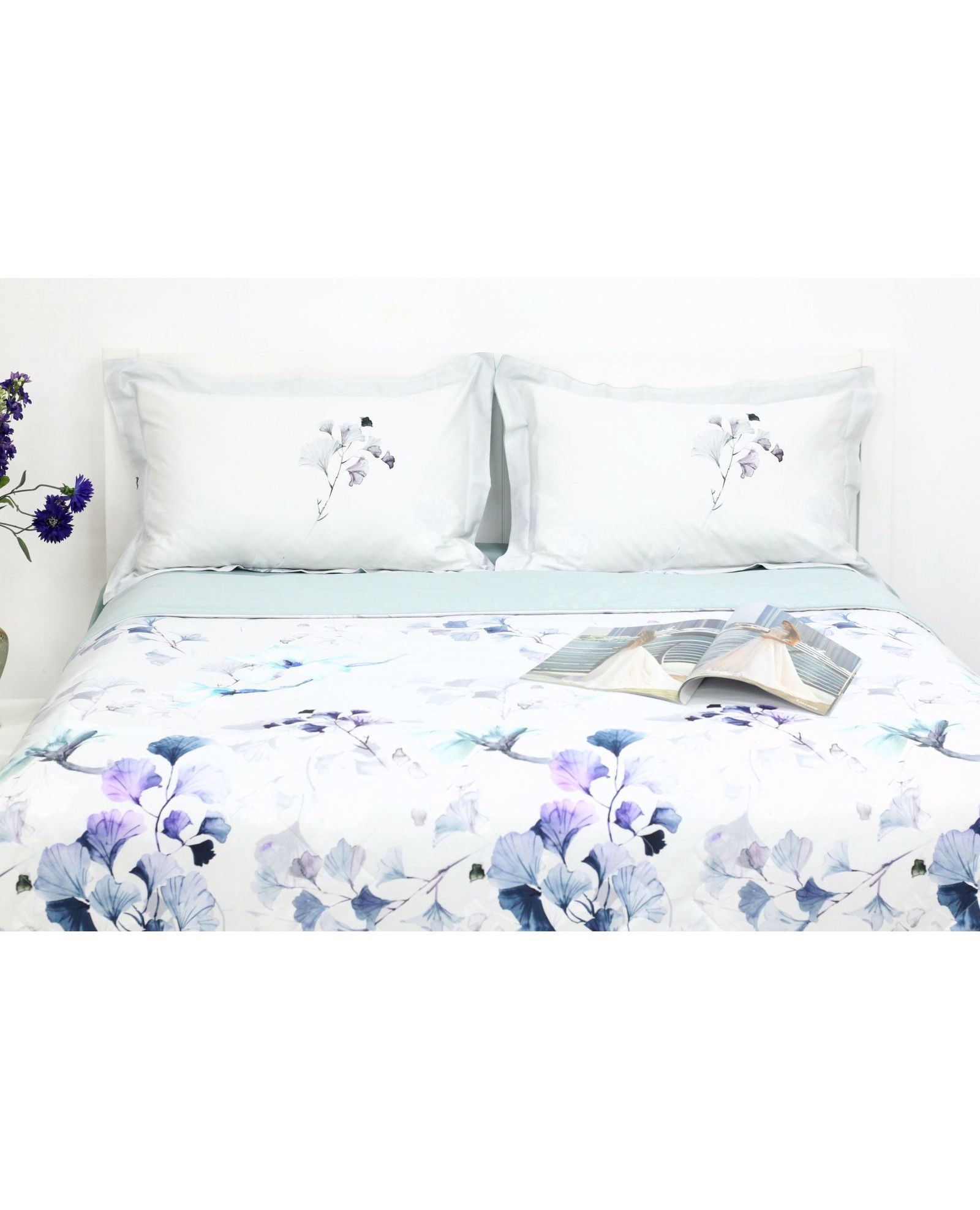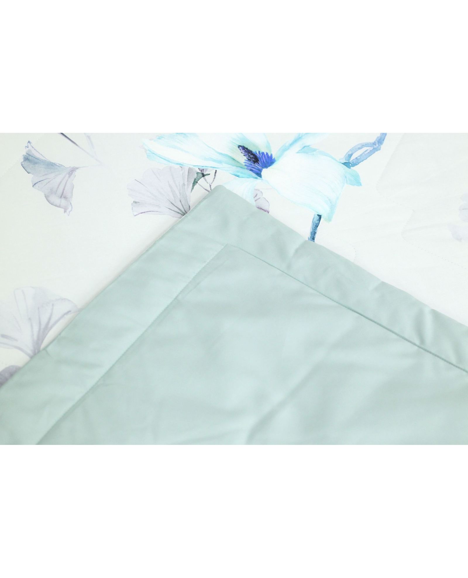 - Простыня (250х250 см) однотонная, цвета петроль, придает комплекту утончённый вид.