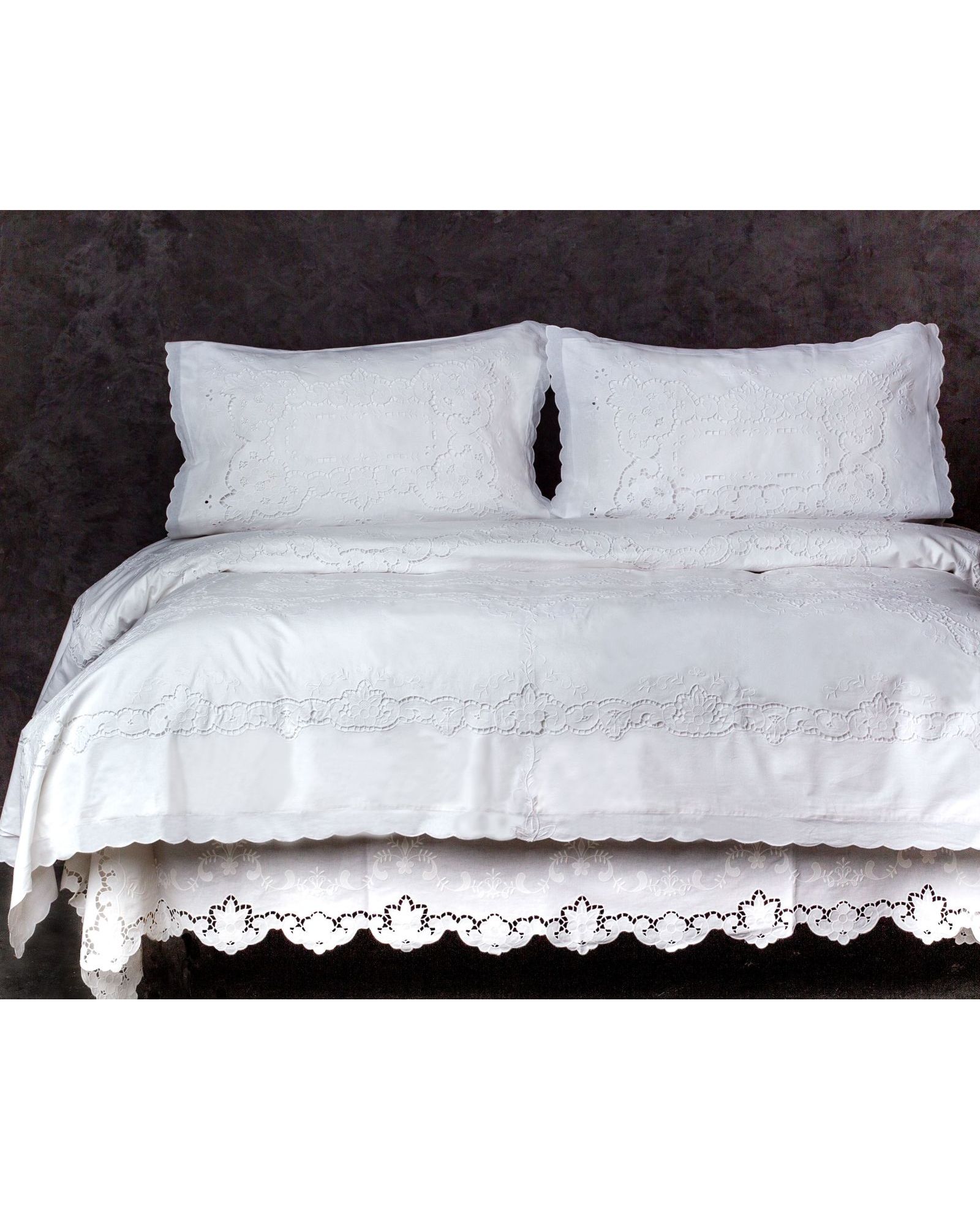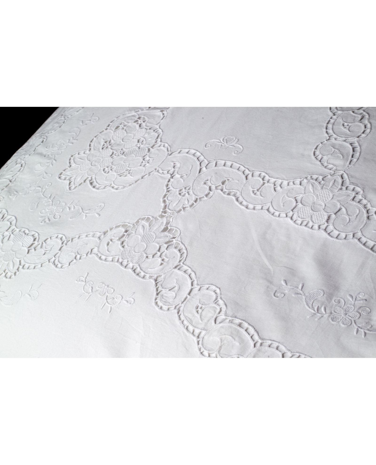 Комплект постельного белья из хлопка белого цвета с ажурной вышивкой