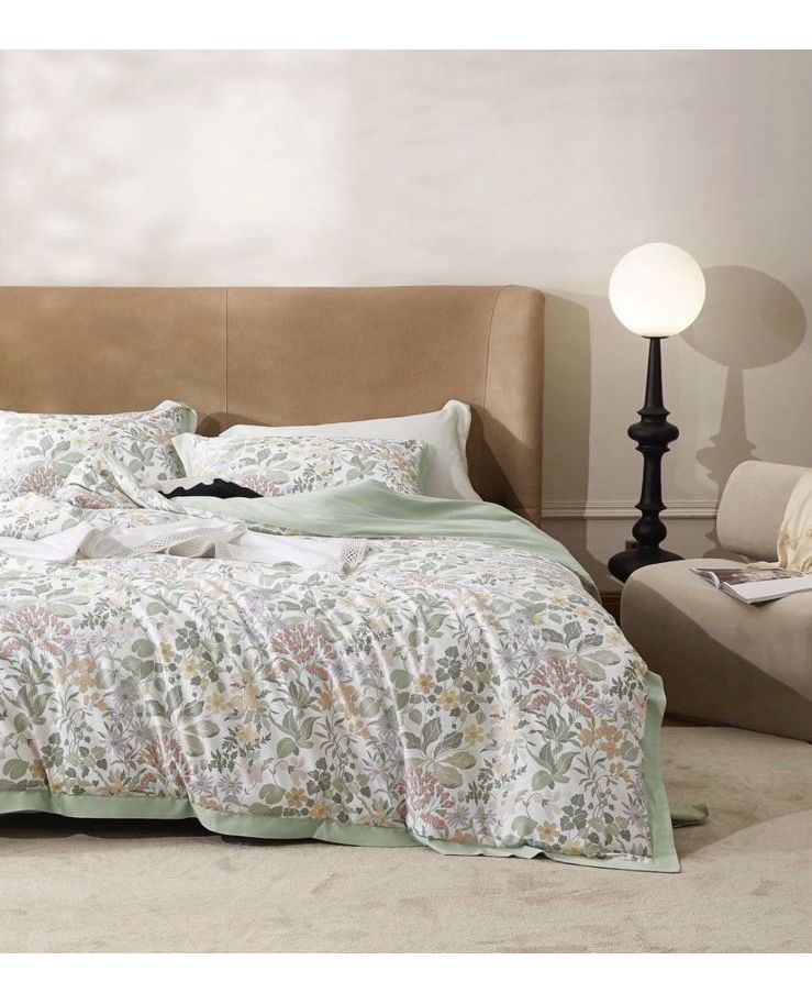 Глубокий зелёный цвет и нежный цветочный орнамент наполняют спальню спокойствием и уютом. Премиум сатин отличается мягкостью, шелковистостью и прочностью.