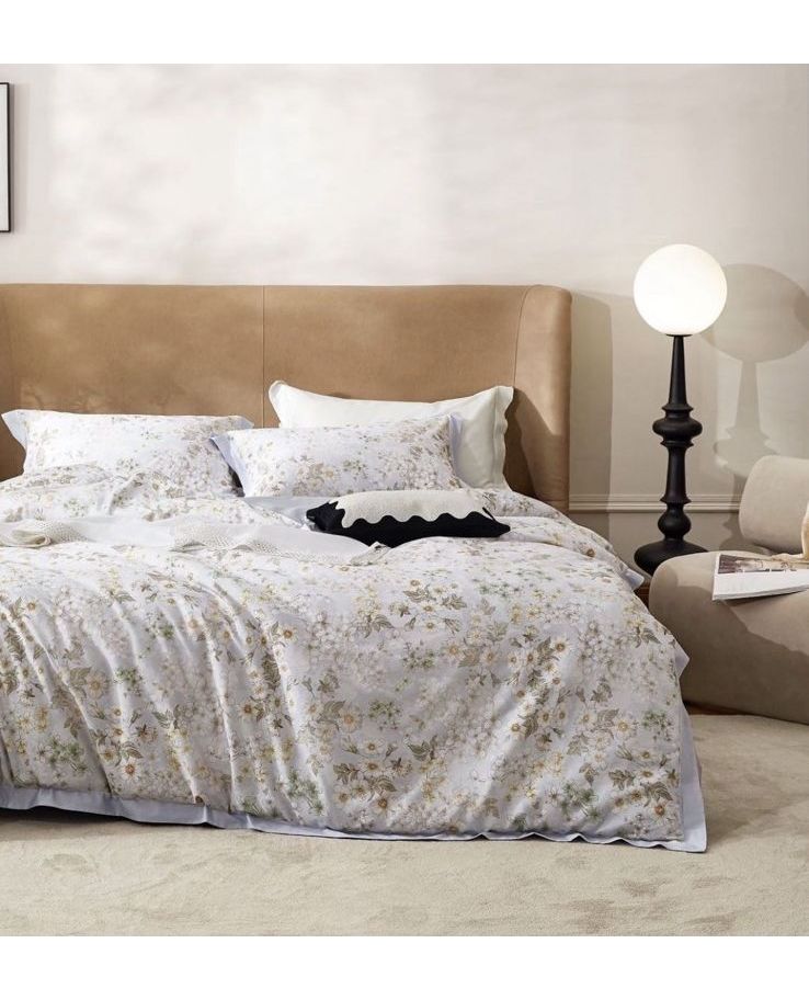 Нежный голубой цвет и утончённый цветочный узор создают в спальне атмосферу свежести и гармонии. Премиум сатин обеспечивает приятные тактильные ощущения и элегантный внешний вид.