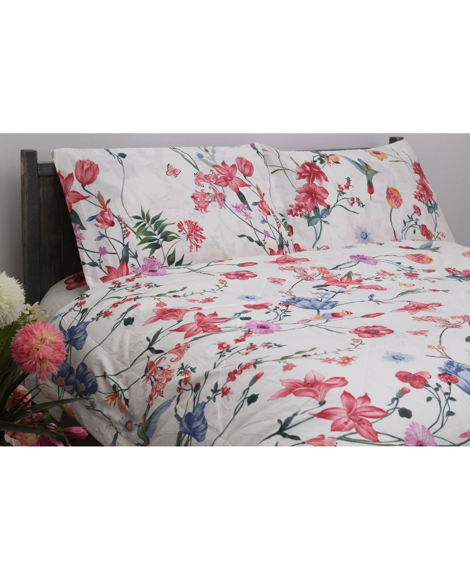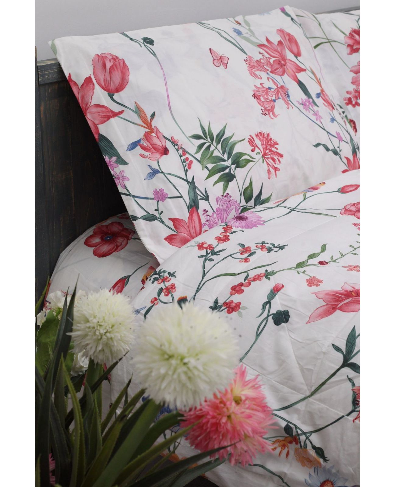 - Простыня (240х250 см) с цветочным принтом идеально сочетается с другими элементами комплекта.