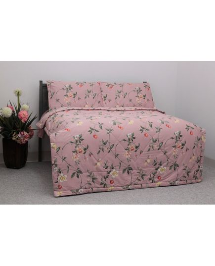 - Нежный розовый цвет с цветочным принтом придаёт комплекту особое очарование и романтичность.