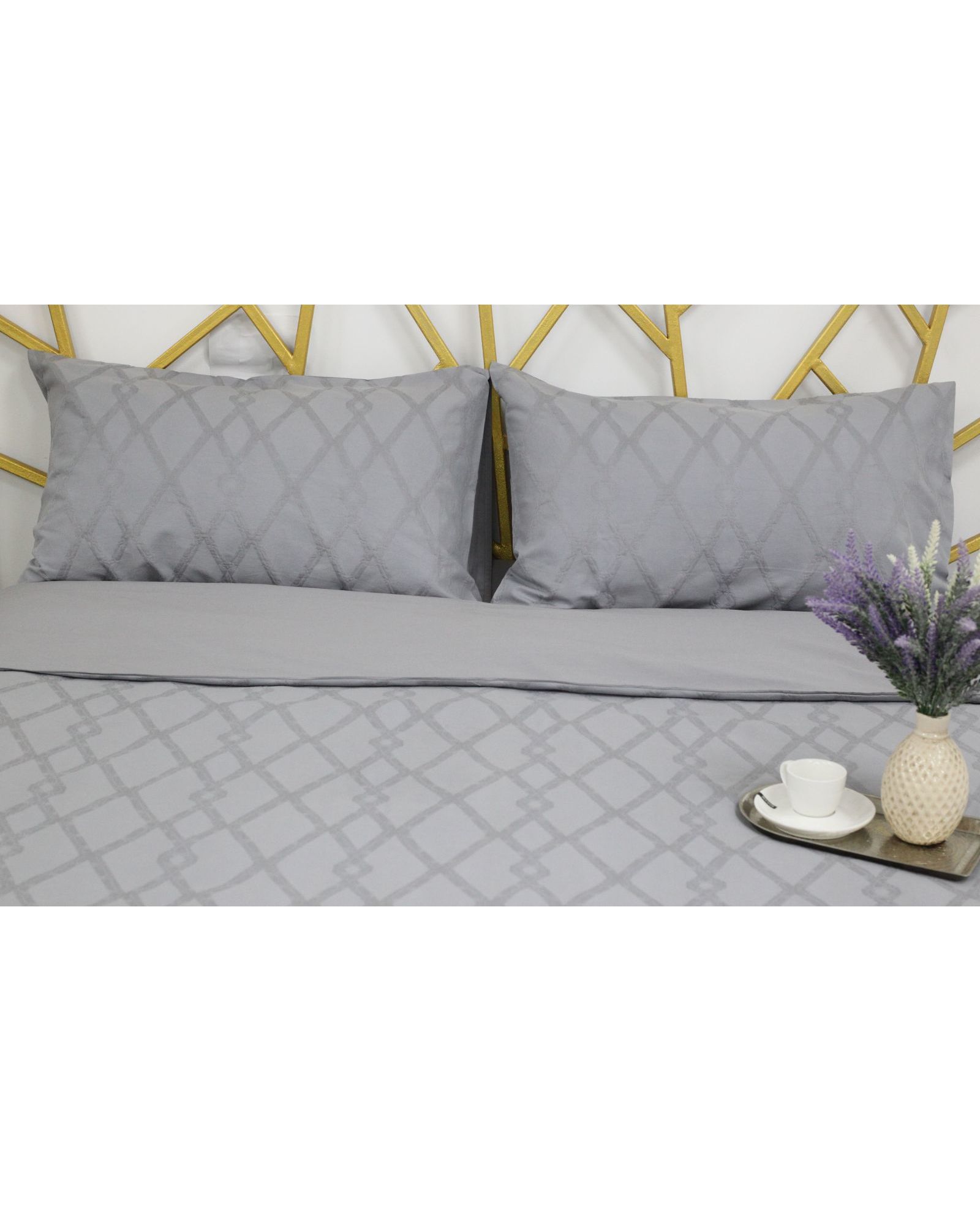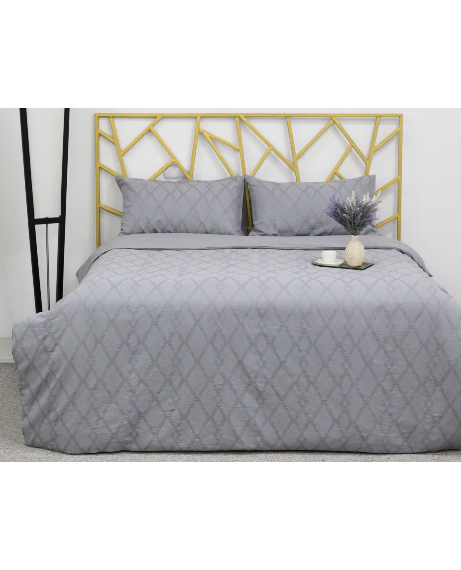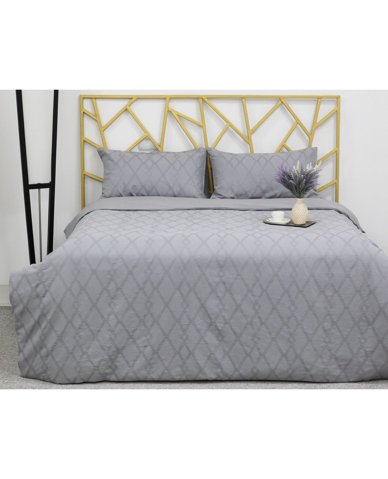 Стильное сочетание серого цвета и утончённого узора придаёт спальне элегантность и сдержанный шарм. Натуральный хлопок гарантирует мягкость, воздухопроницаемость и комфортный сон каждый день.