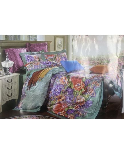 Комплект постельного белья мятного цвета с сиреневым и цветочным узором создаст в спальне атмосферу лёгкости и уюта. Сочетание полиэстера и хлопка делает ткань прочной и комфортной в использовании.