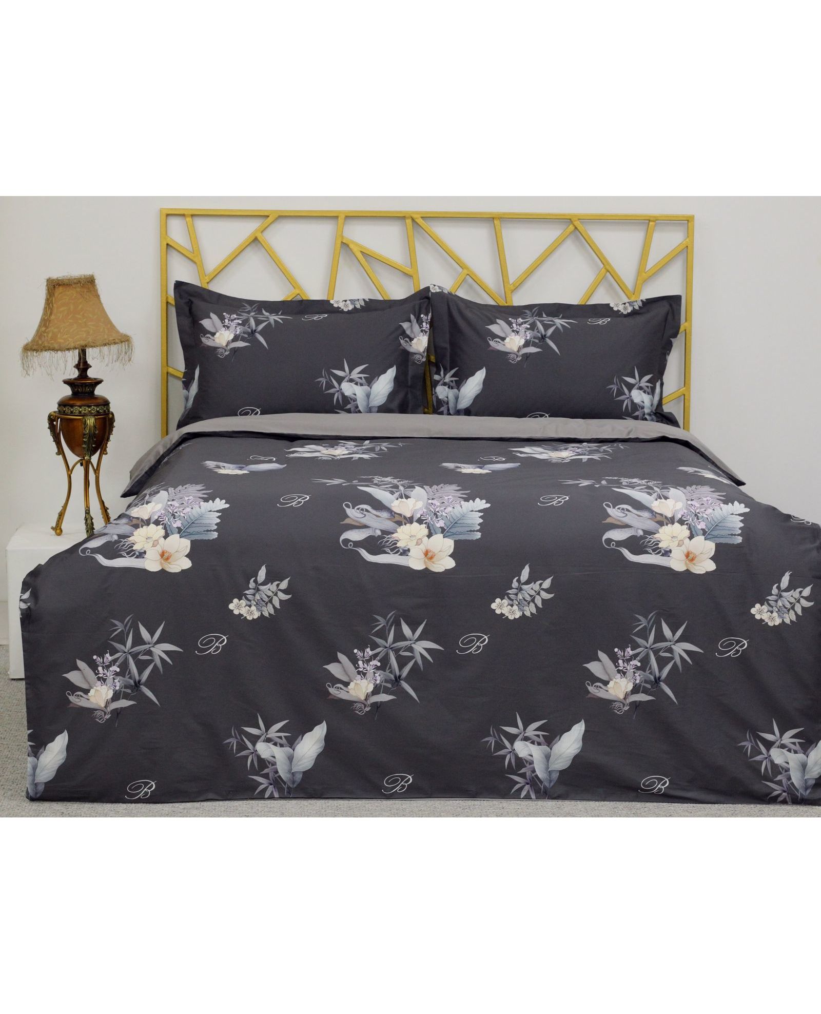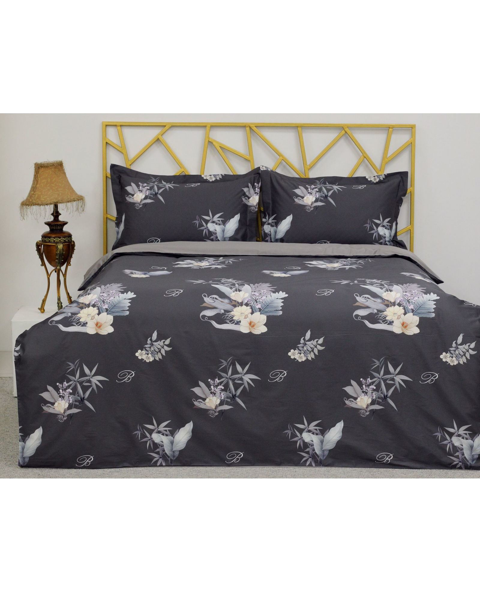 Комплект постельного белья с пододеяльником 200х230 см, простынёй 250х250 см и двумя наволочками 50х70 см выполнен в сером цвете с изысканным растительным принтом и украшен стразами. Сатин De Lux 100% отличается мягкостью, благородным блеском и обеспечивает комфортный сон. Такой комплект станет настоящим украшением спальни.