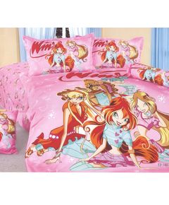 Комплект постельного белья Winx Club Комплект постельного белья с героями любимого сериала Winx Club подарит волшебное настроение маленьким поклонницам. Нежный розовый цвет и яркие принты с персонажами создадут атмосферу сказки. Особенности: Яркий рисунок с героинями...