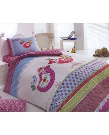Комплект постельного белья голубого и белого цвета с милым детским принтом создан для мягкого и уютного сна малыша. Натуральный хлопок приятен к телу и хорошо дышит.