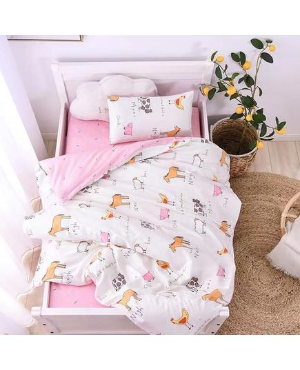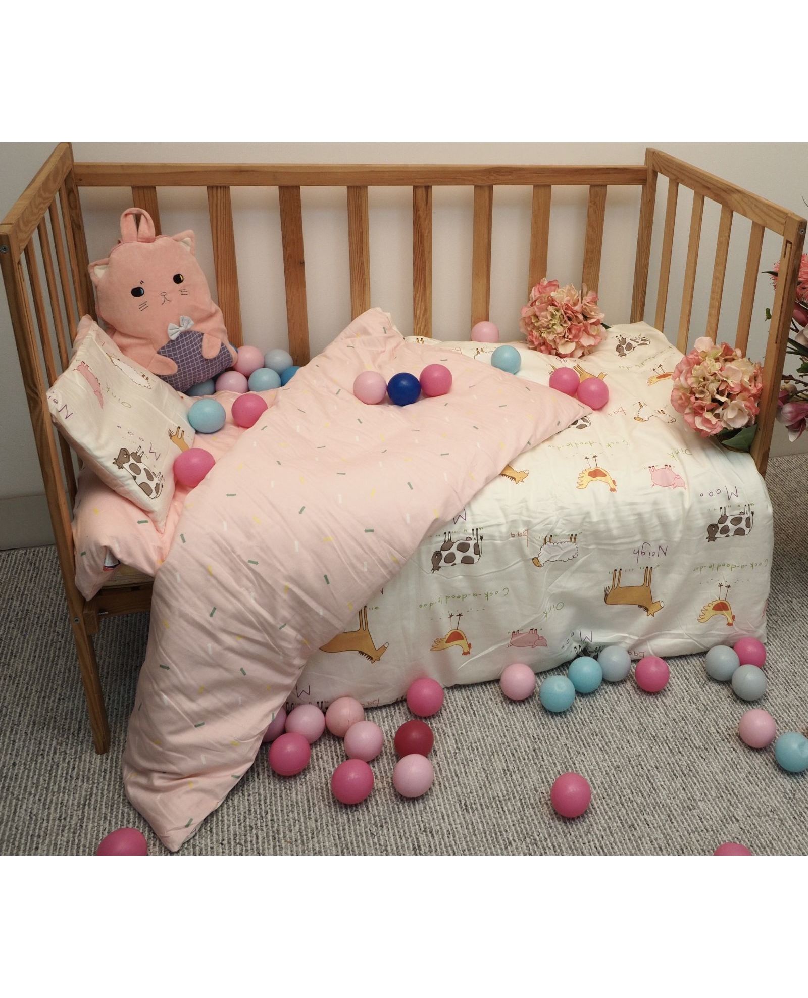 Детский комплект постельного белья (розовый с белым), 6 предметов