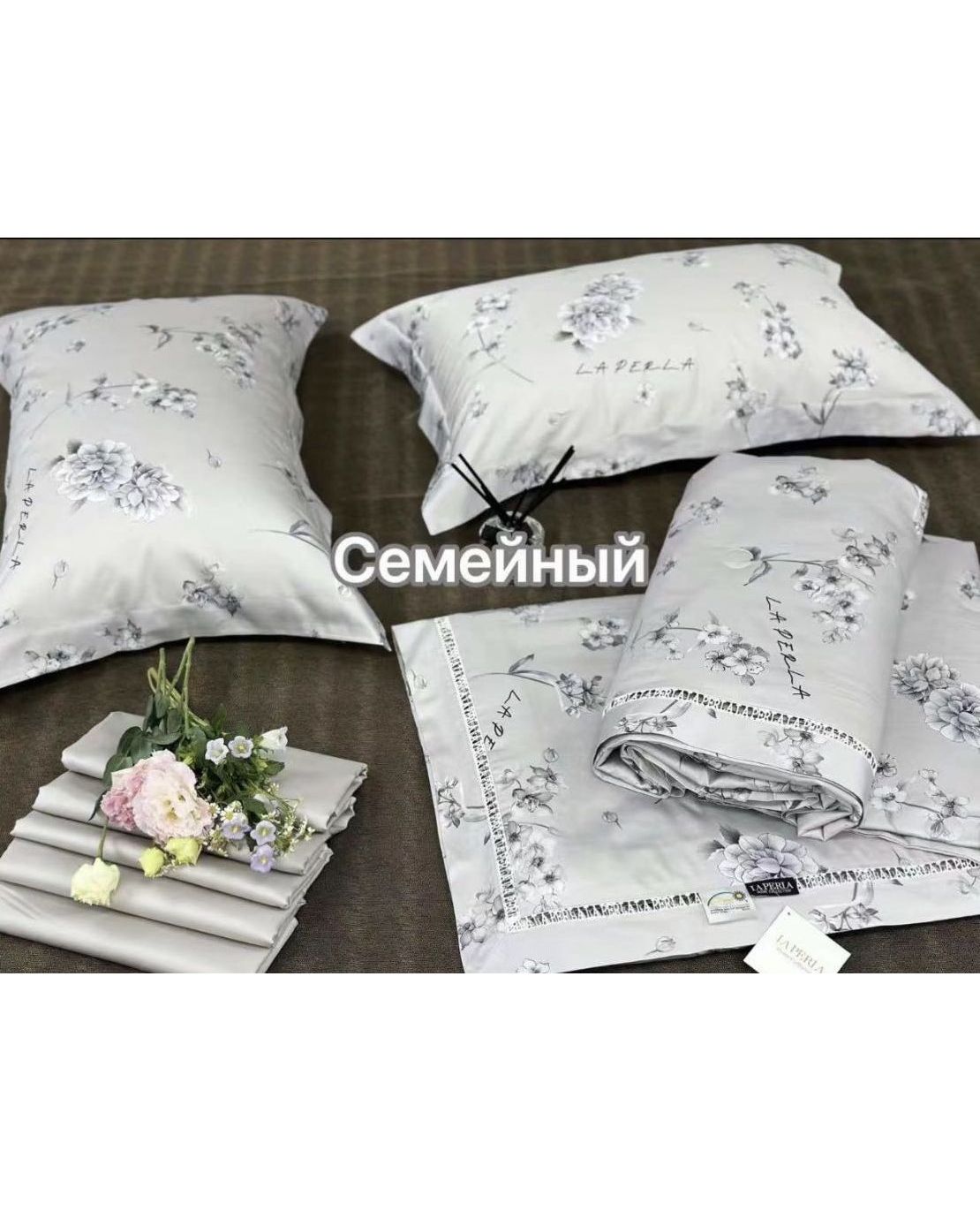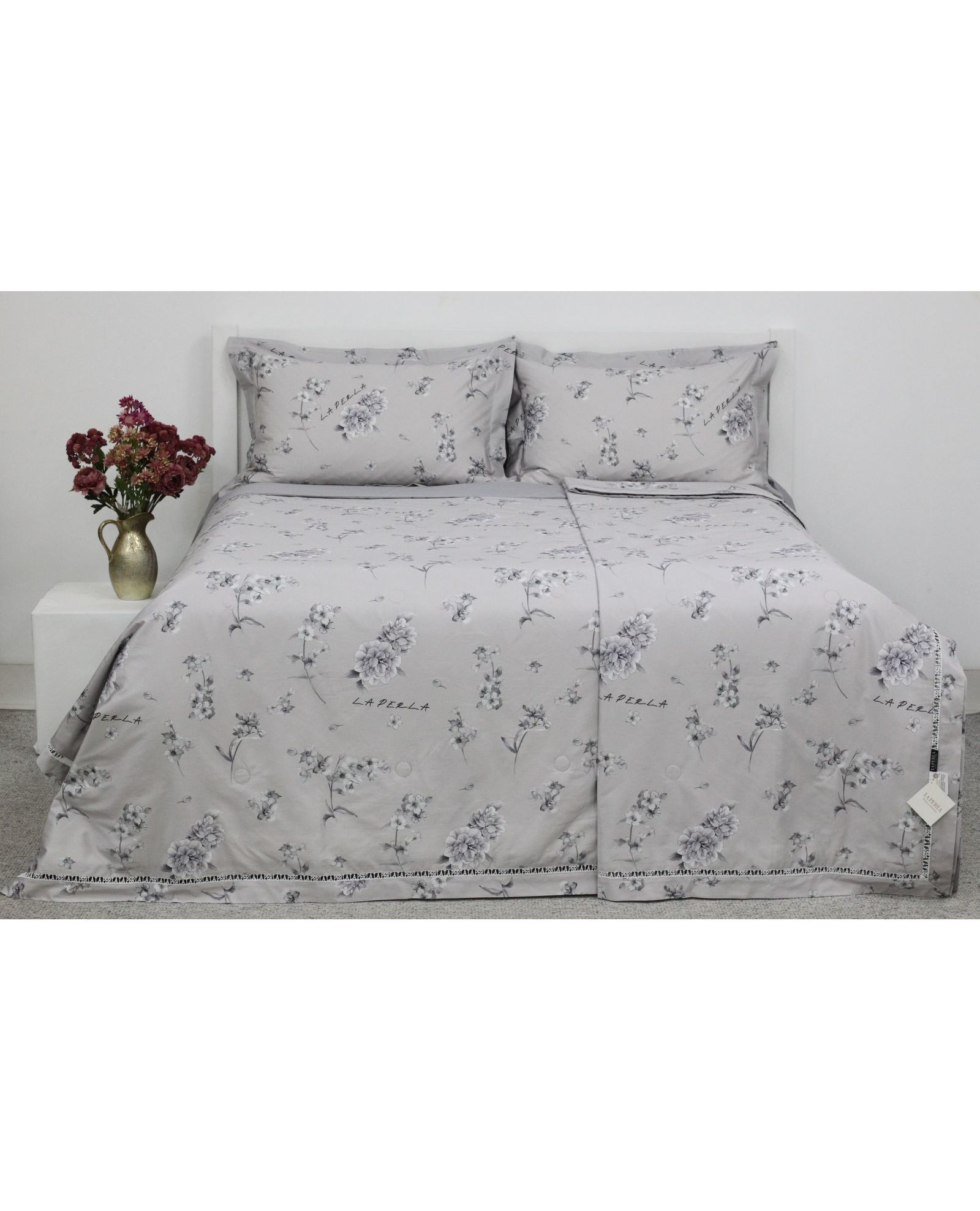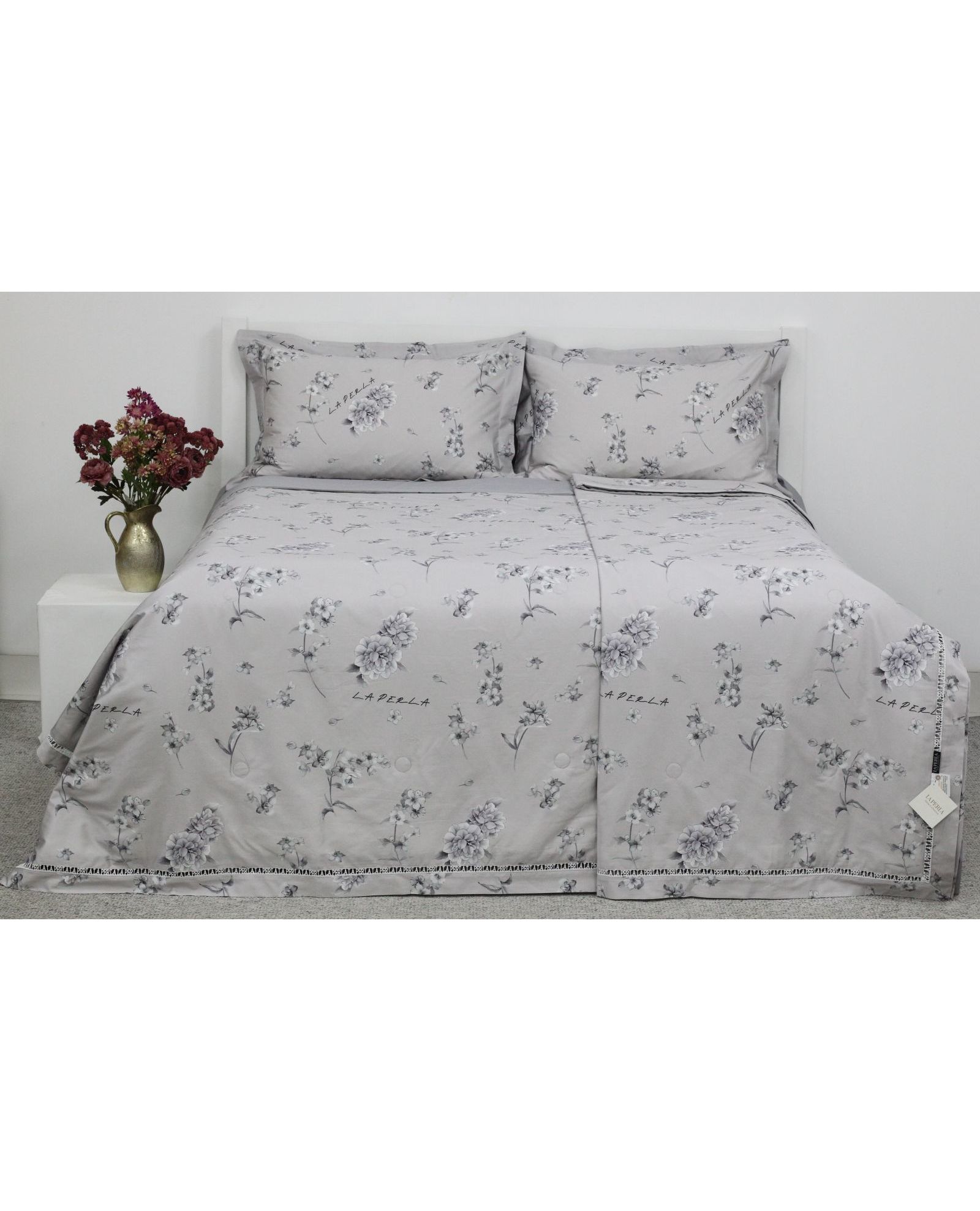 Семейный комплект постельного белья с летними одеялами LA PERLA, серый с цветочным принтом