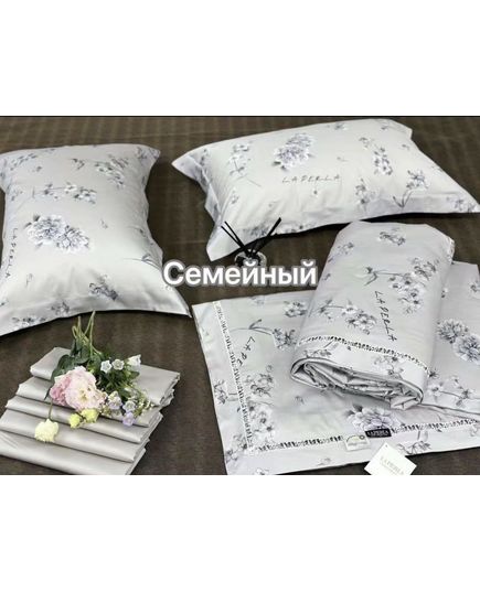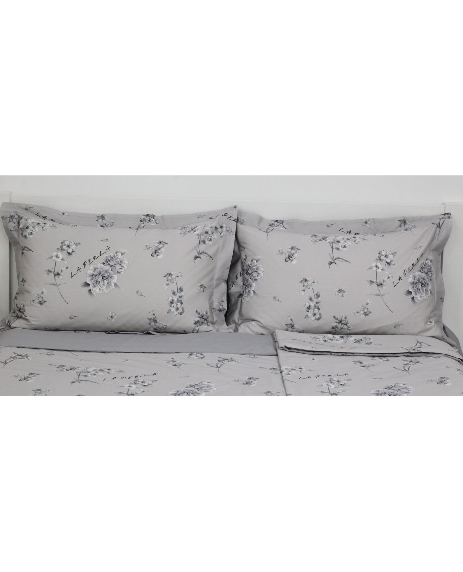 Изысканный комплект постельного белья от итальянского бренда LA PERLA — воплощение утончённого стиля и комфорта. Серый оттенок с цветочным принтом и фирменной отделкой по краям с логотипом подчёркивают статус и элегантность изделия.