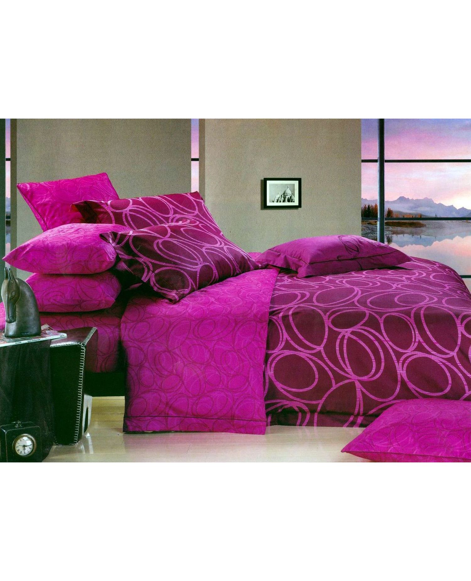Семейный комплект постельного белья в малиново-сиреневый